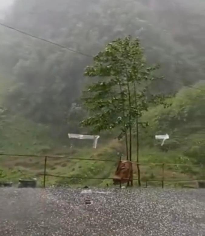 四川马边出现强对流天气 弹珠大的冰雹密集砸下