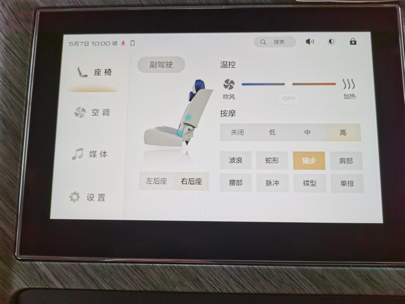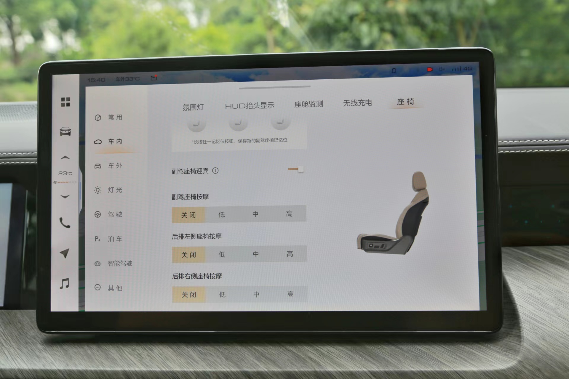 中控采用14.6英寸媒体触控屏幕,边框极窄,同时对反光抑制到位,可读性高。内部UI界面简洁,图标很大,易上手。屏幕最左侧为空调,泊车影像,驾驶模式的快捷操作键,使用起来很方便。