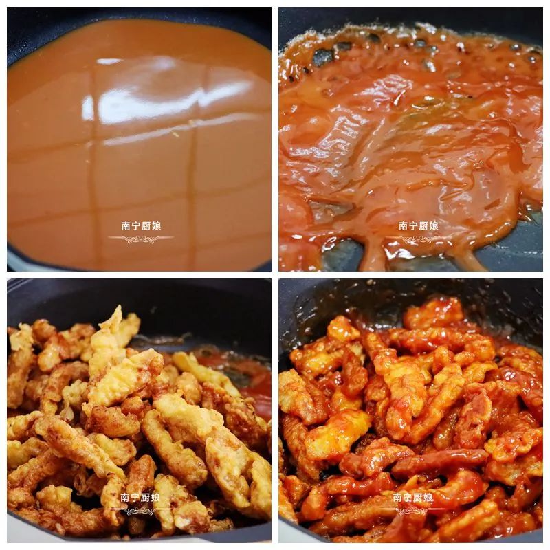 2、最后裹上糖醋汁时,一定要大火快速翻炒,炒的时间久了,糖醋里脊的口感就会不酥脆。