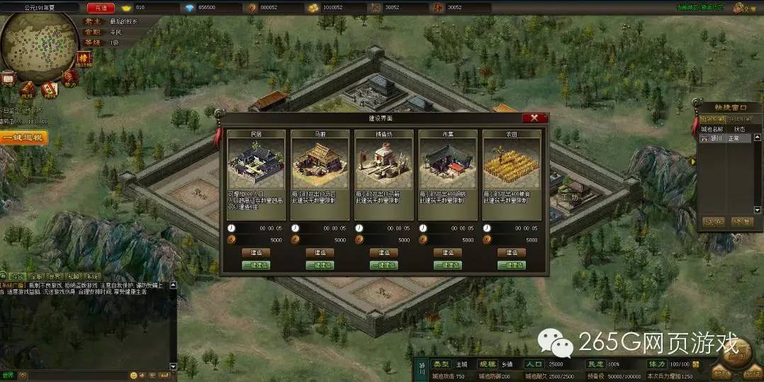 在领地之中,玩家可以在空闲的地块上打造自己心仪的建筑,作为扩张人口所用的民居、提供马匹的马厩、生产粮食的农田等,合理的搭配使得自身的生产效率最大化,从而为天下霸业打下良好的基础,不过游戏后期部分功能性建筑的耗时过长,略显纠结……