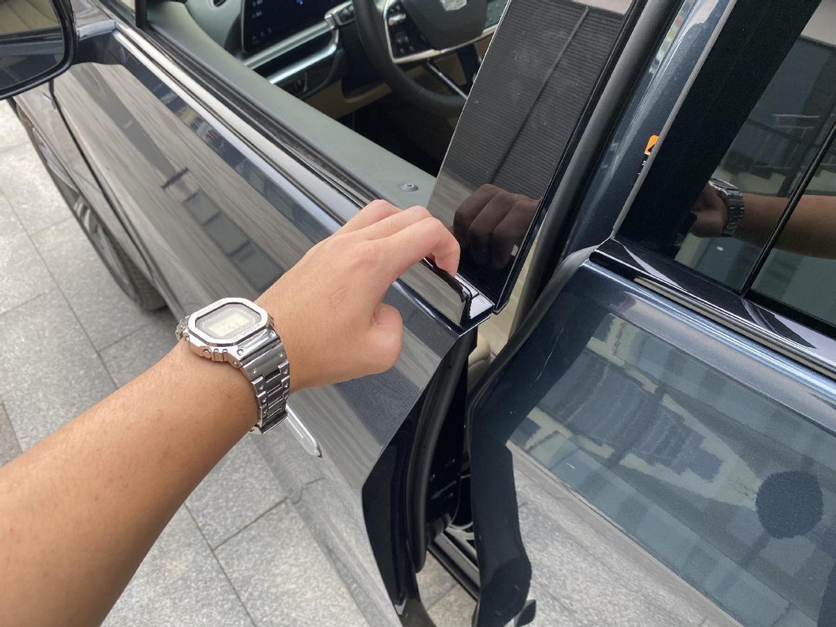 有5米长的车子,侧面看起来会比较修长,那D柱上面的也是灯带,算是比较有辨识度吧。车门不是隐藏式的,而是按压式,然后上方的小揪揪算是个门把手吧,一开始我还以为是个降低风阻的小设计,但只有前排车门有,后排车门没有,不知道设计师是怎么想的。