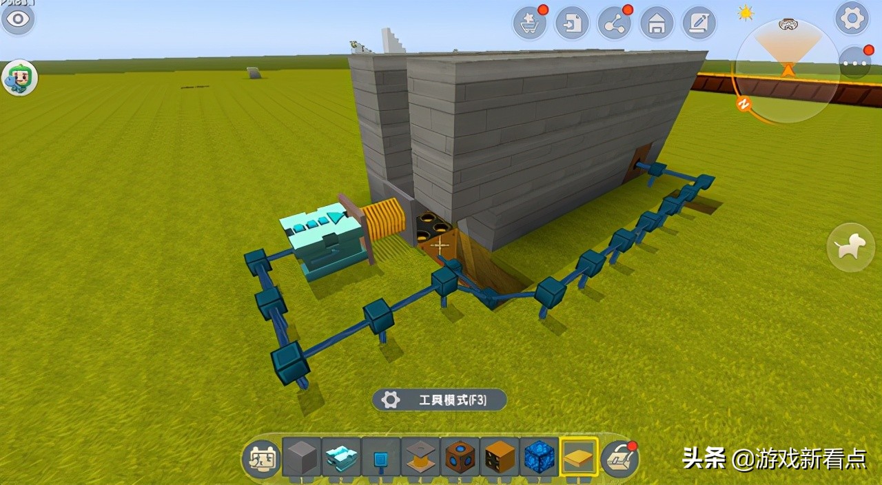 蓝色电能线的作用就十分简单了,主要就是连接电路,与红色的电能线无法相互连接;金弹簧被电路触发后,会将接触的方块和其他生物直接弹出去;感应方块的五个面都可以感应周围的方块的变化,从而产生电能传输给外界,在下面搭建的过程会详细的介绍。