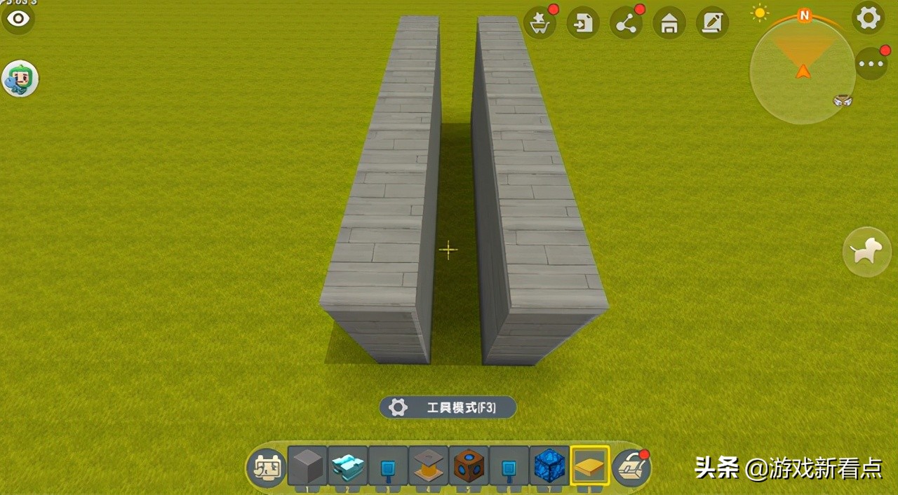首先在地面用普通的硬方块搭建一个通道,两侧的墙壁高度至少在三方块以上,中心点间隔一方块的距离,通道的长度最好在八方块左右,根据实际需求自行调整。