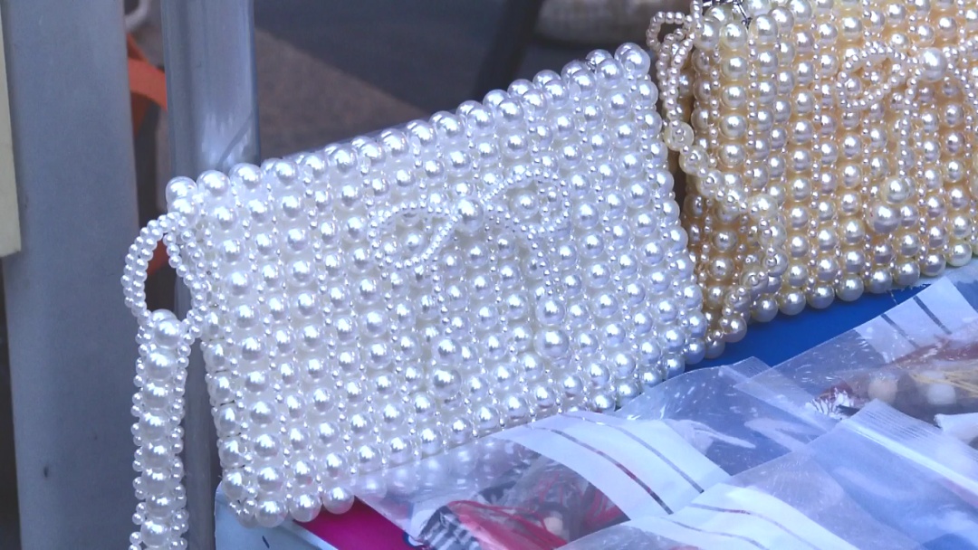 下午5点,延吉新村街道第二睦邻中心蝶邻坊手工服务队的成员陈阿姨,早早来到延吉商业中心广场夜市,摆起摊位。面前这些精致的小香囊、珍珠包和手工拼装套装,都是陈阿姨和蝶邻坊的姐妹们一起制作的商品。卖力地推销加上5元一件的价格,吸引了不少市民前来购买。
