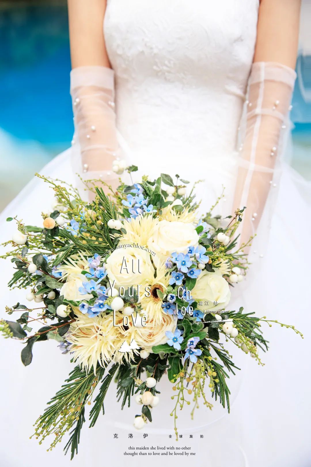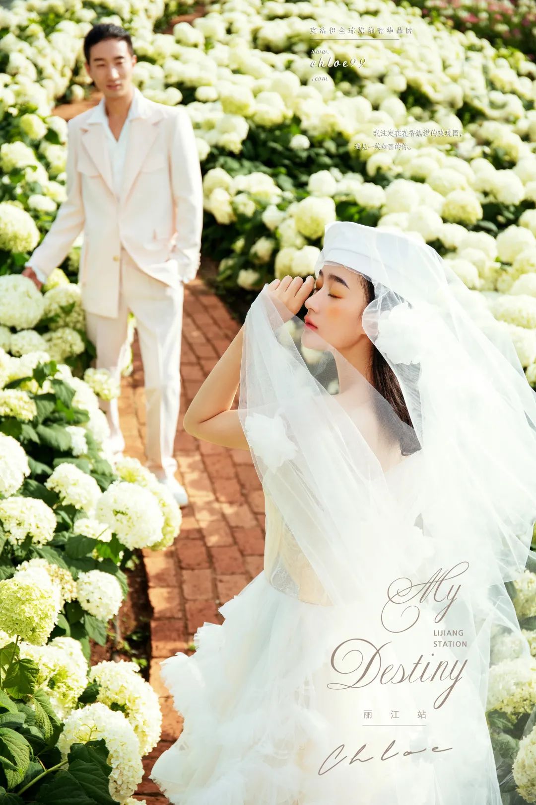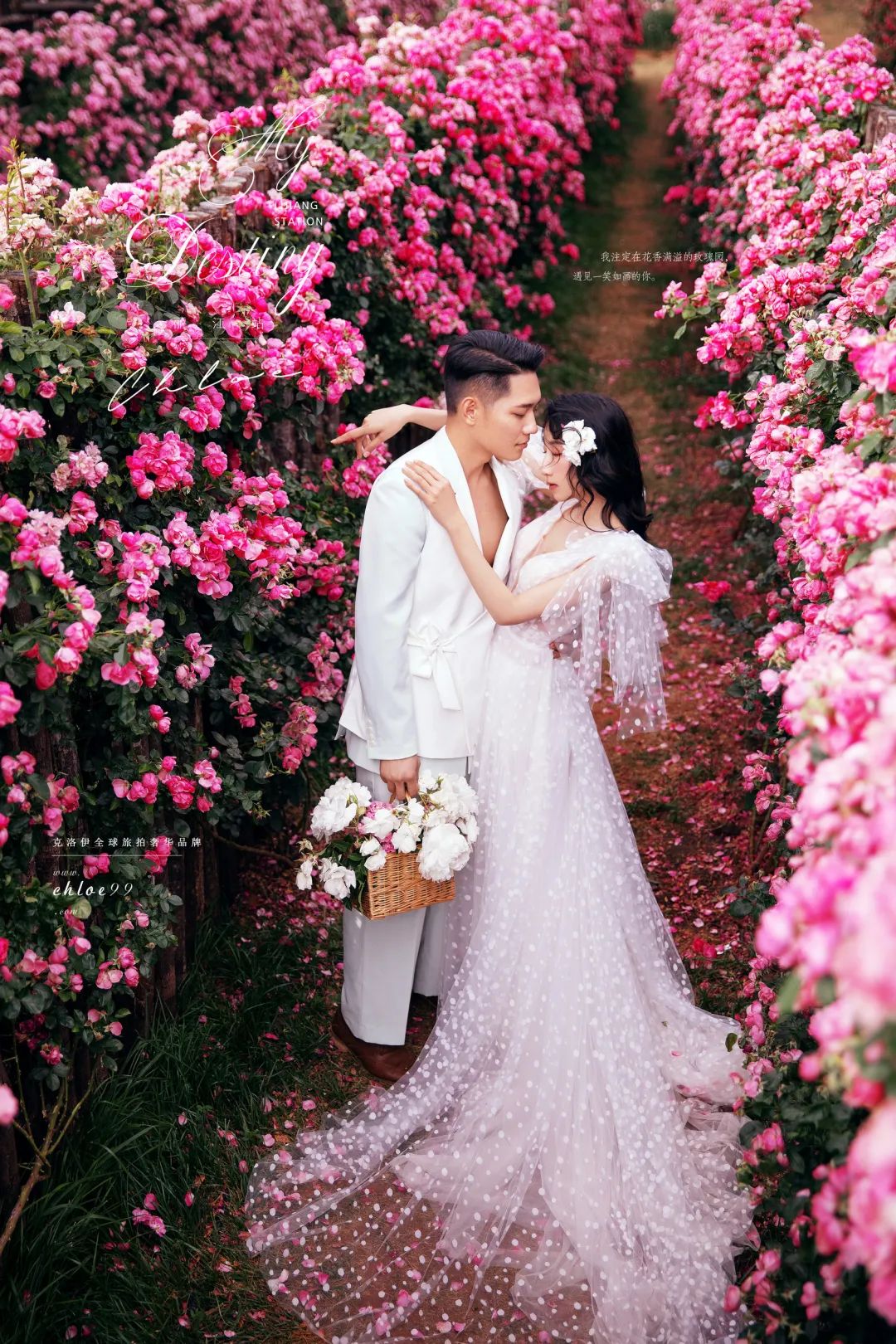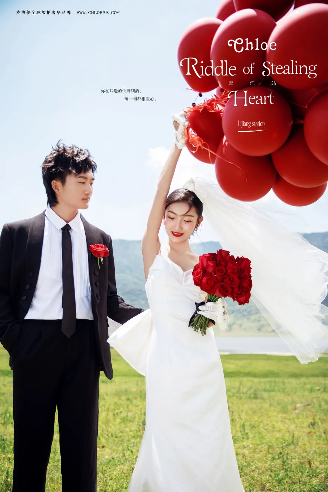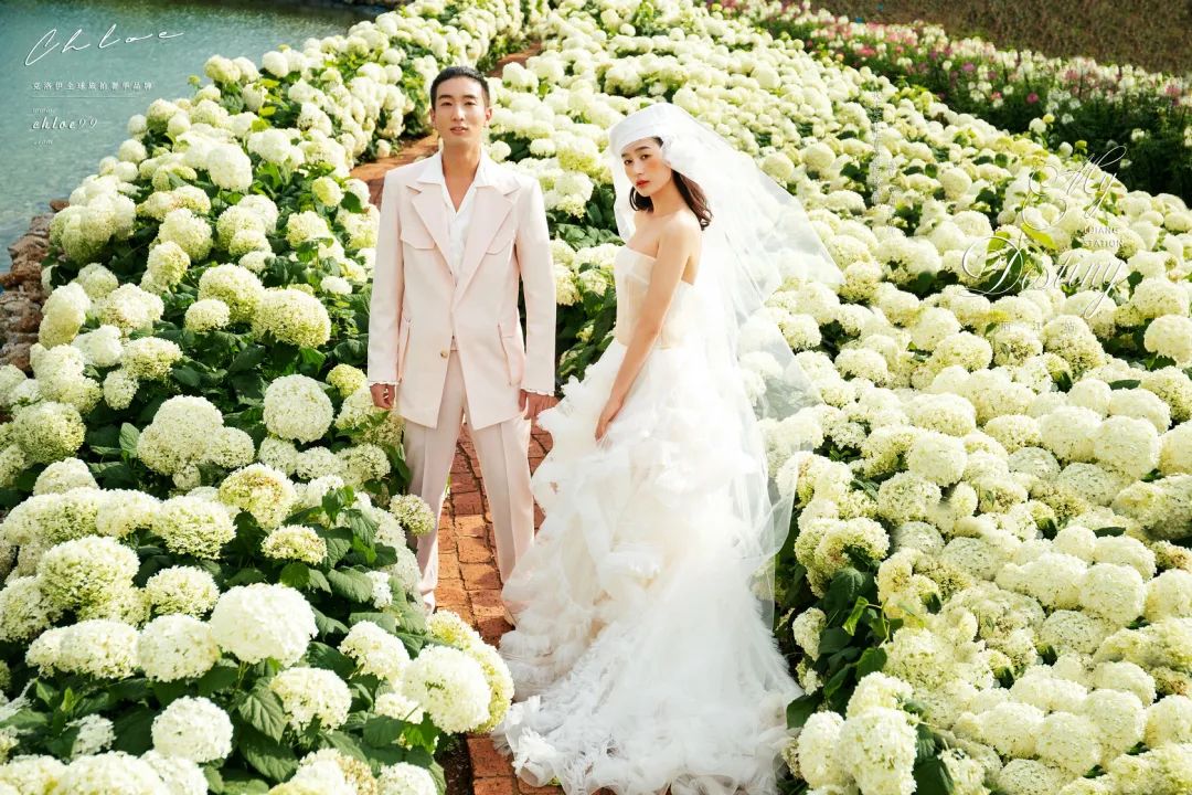颜色各异的柔美绣球状花形,不仅有着喜庆圆满的寓意,更是对美好爱情的期待。