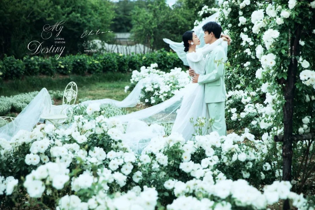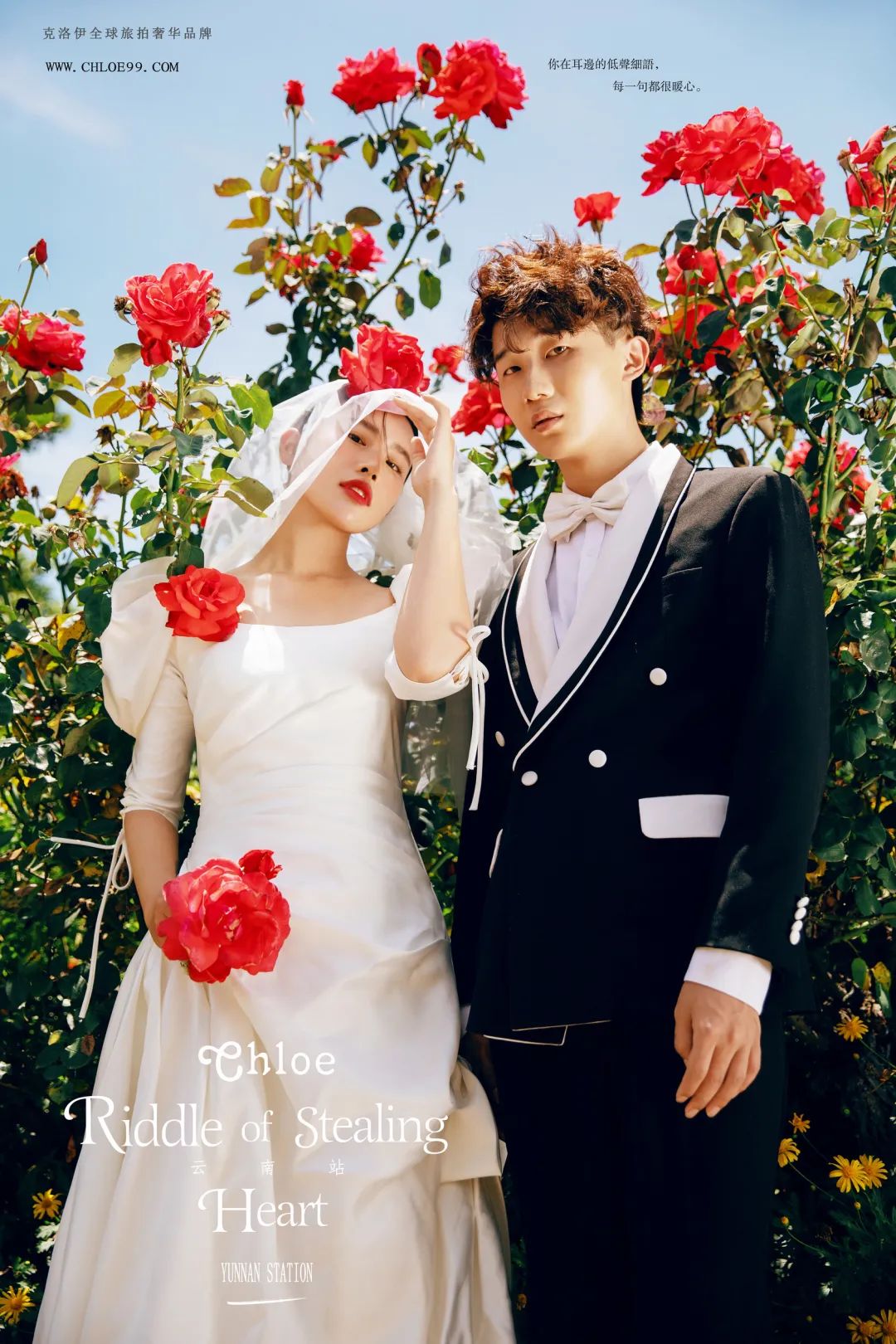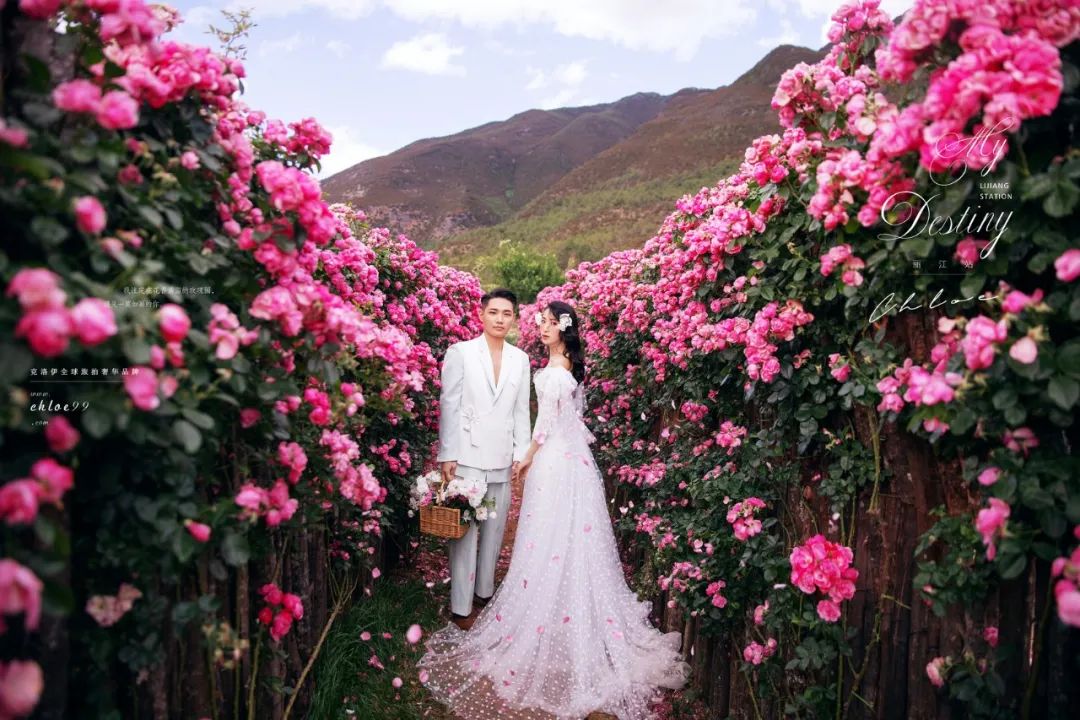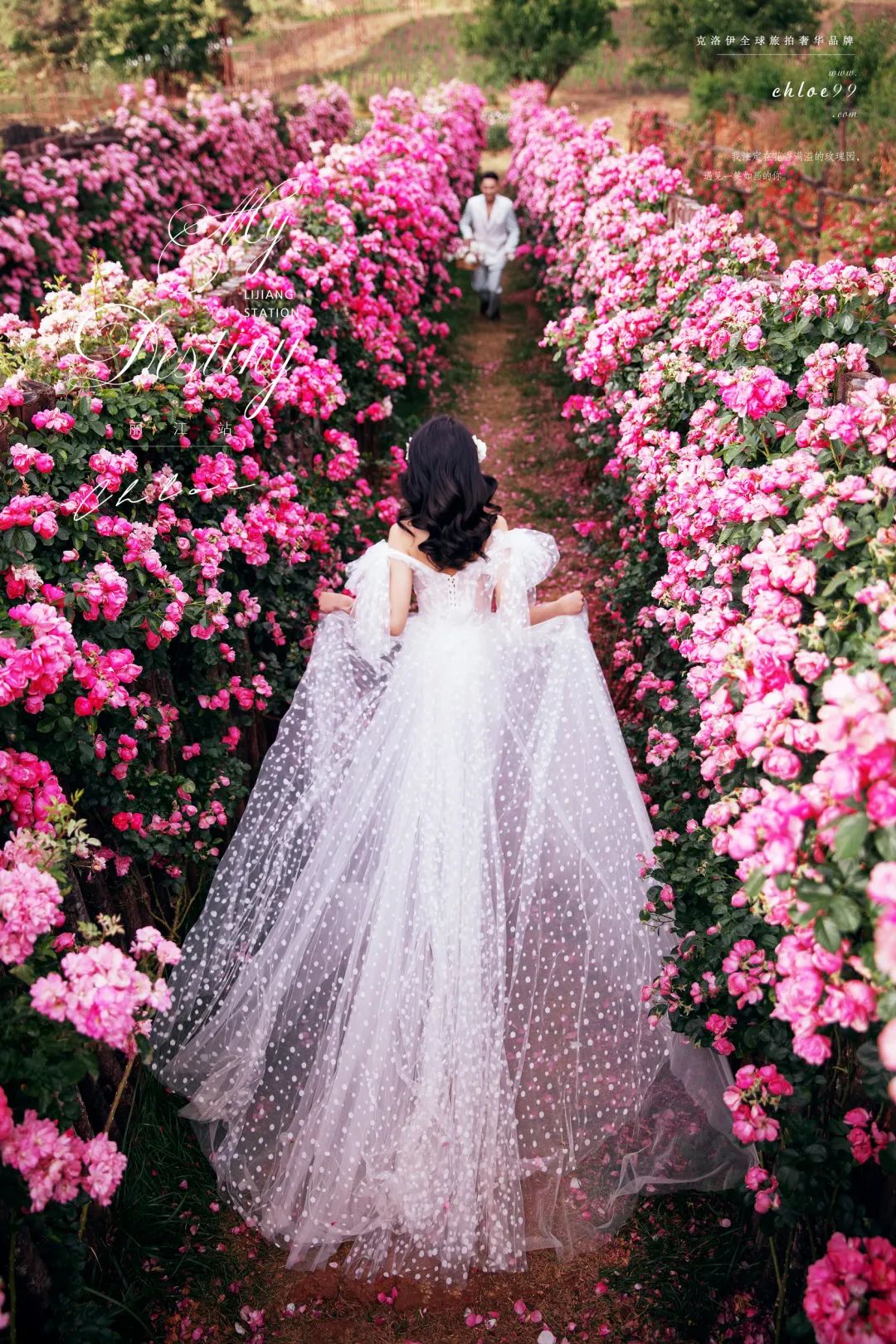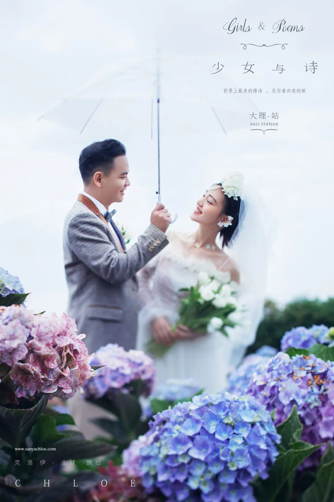 颜色各异的柔美绣球状花形,不仅有着喜庆圆满的寓意,更是对美好爱情的期待。