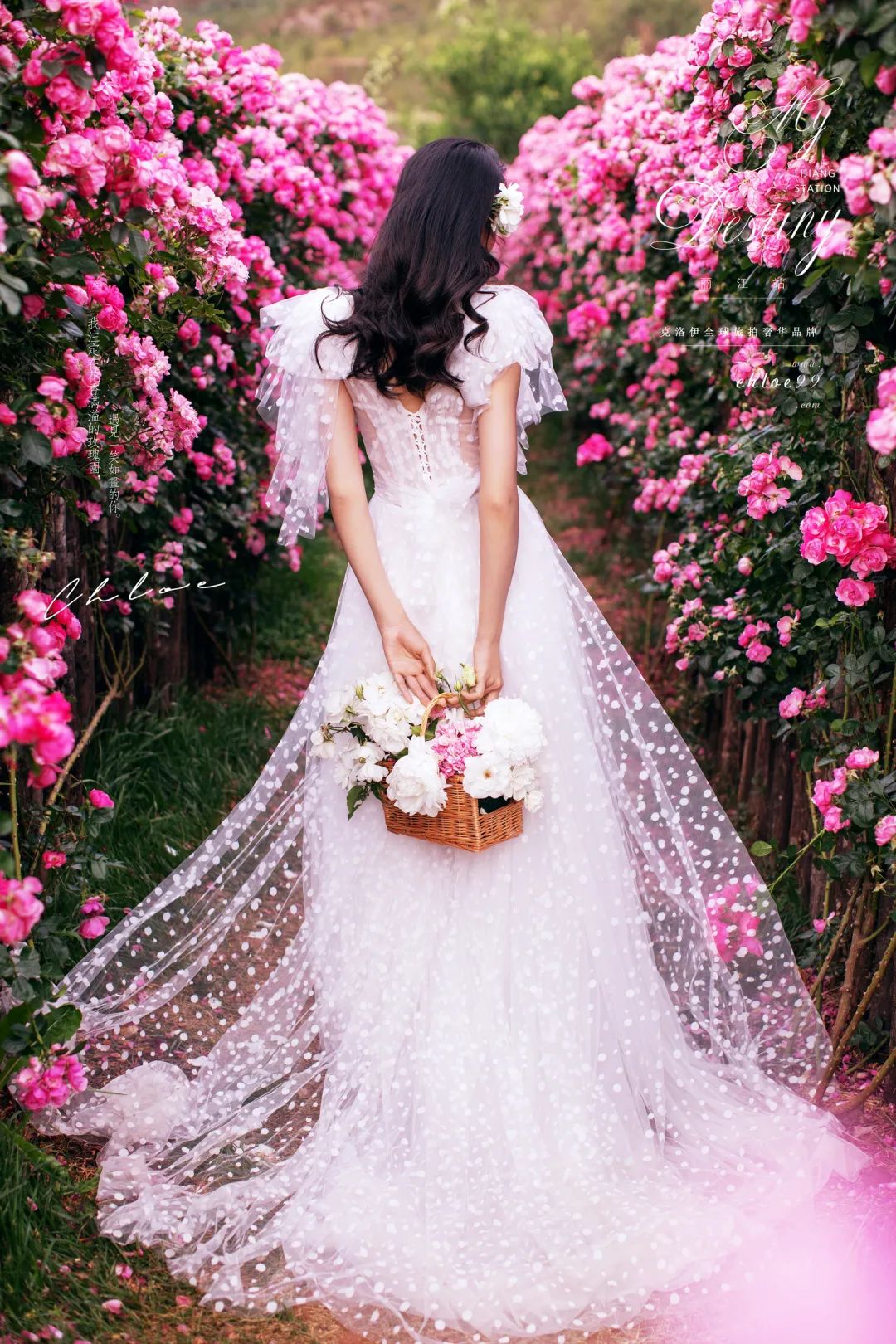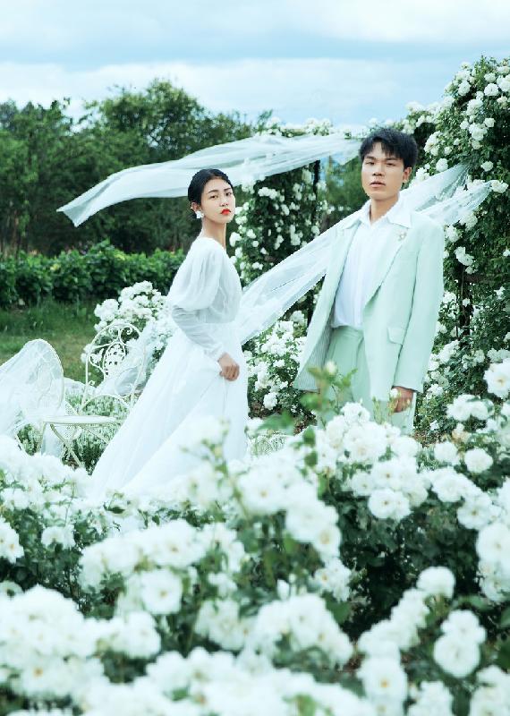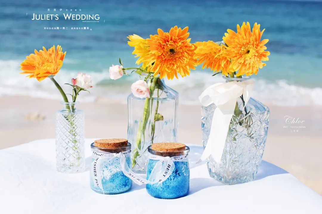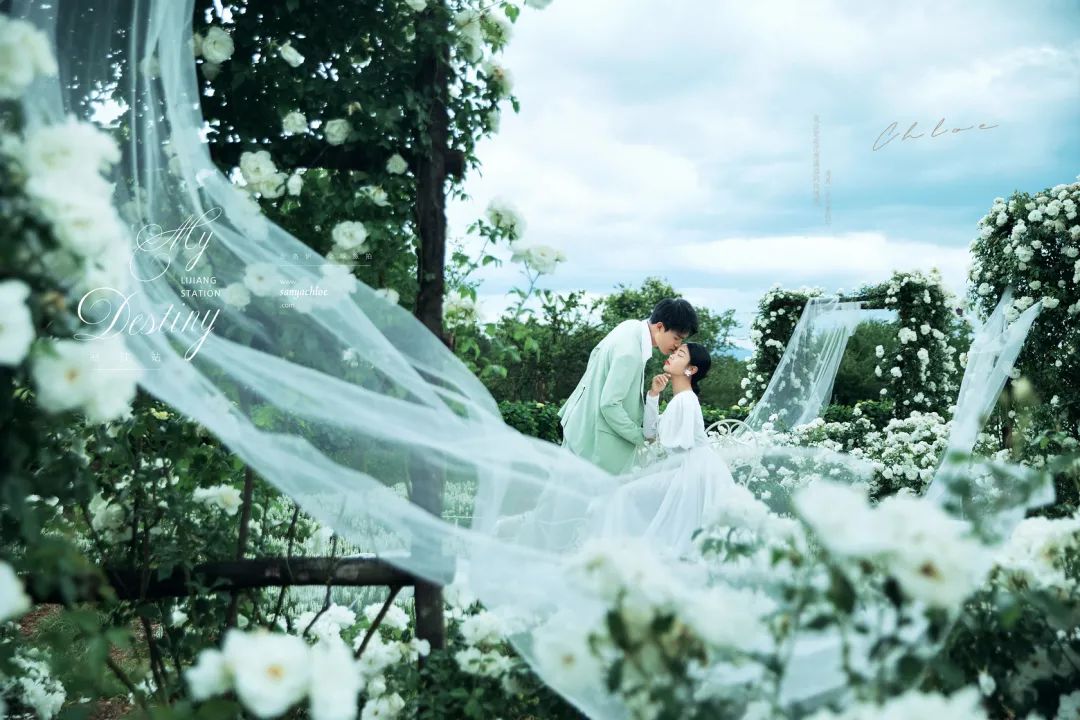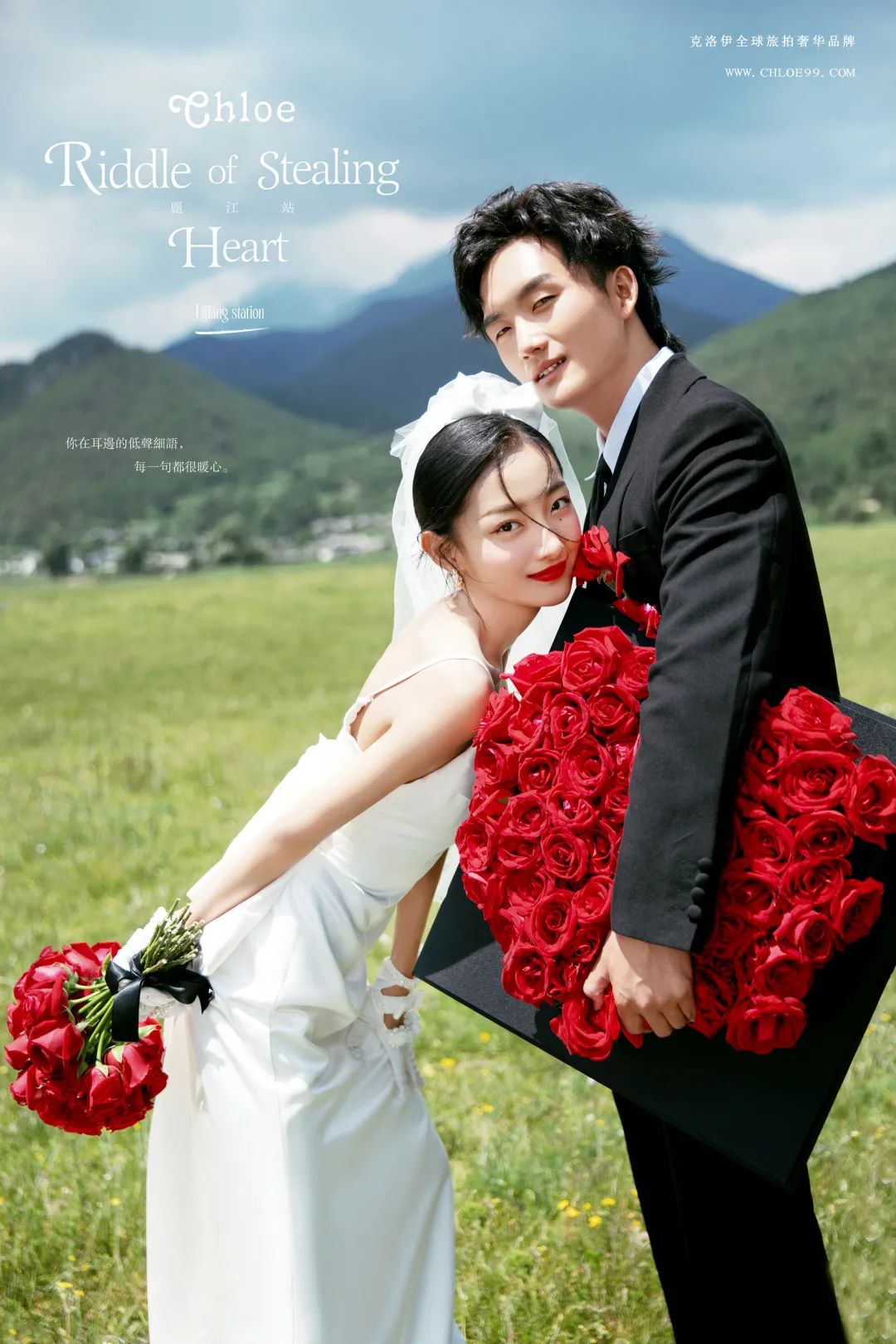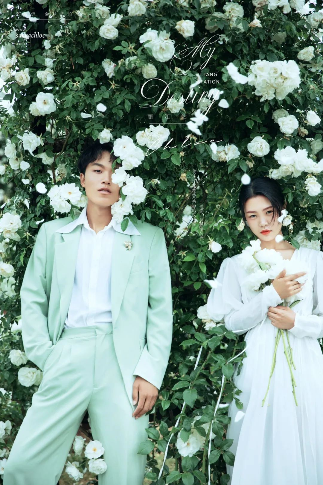 颜色各异的柔美绣球状花形,不仅有着喜庆圆满的寓意,更是对美好爱情的期待。