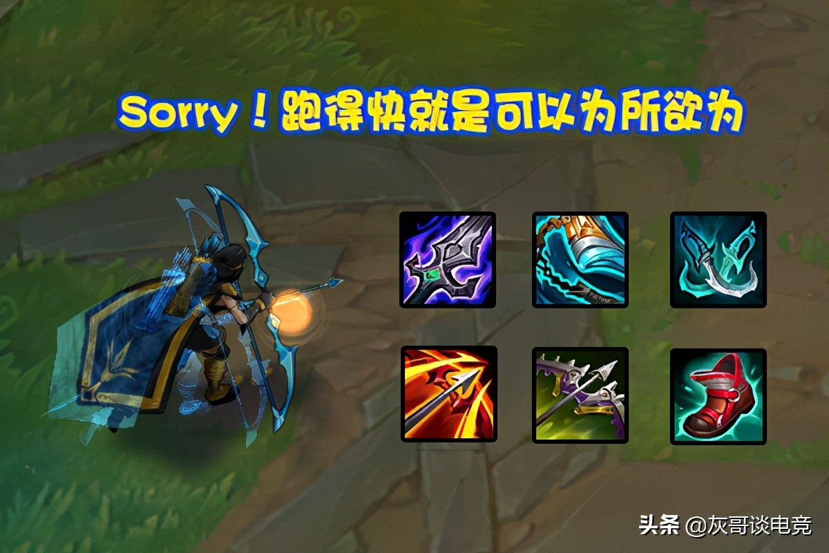 其次挺进破坏者可以大幅提升艾希的生存能力,多出一个十几秒的小位移不说,同时还能为其提供高额移速,挺进破坏者本身平A自带30移速,再加上神话被动每件传说装备又多加3%移速,搭配二速鞋、破败(自己加速对手减速)、绿叉(7%移速+被动移速)、飓风(7%移速)和凡性的提醒(7%移速),6件移速装让艾希直接“起飞”。
