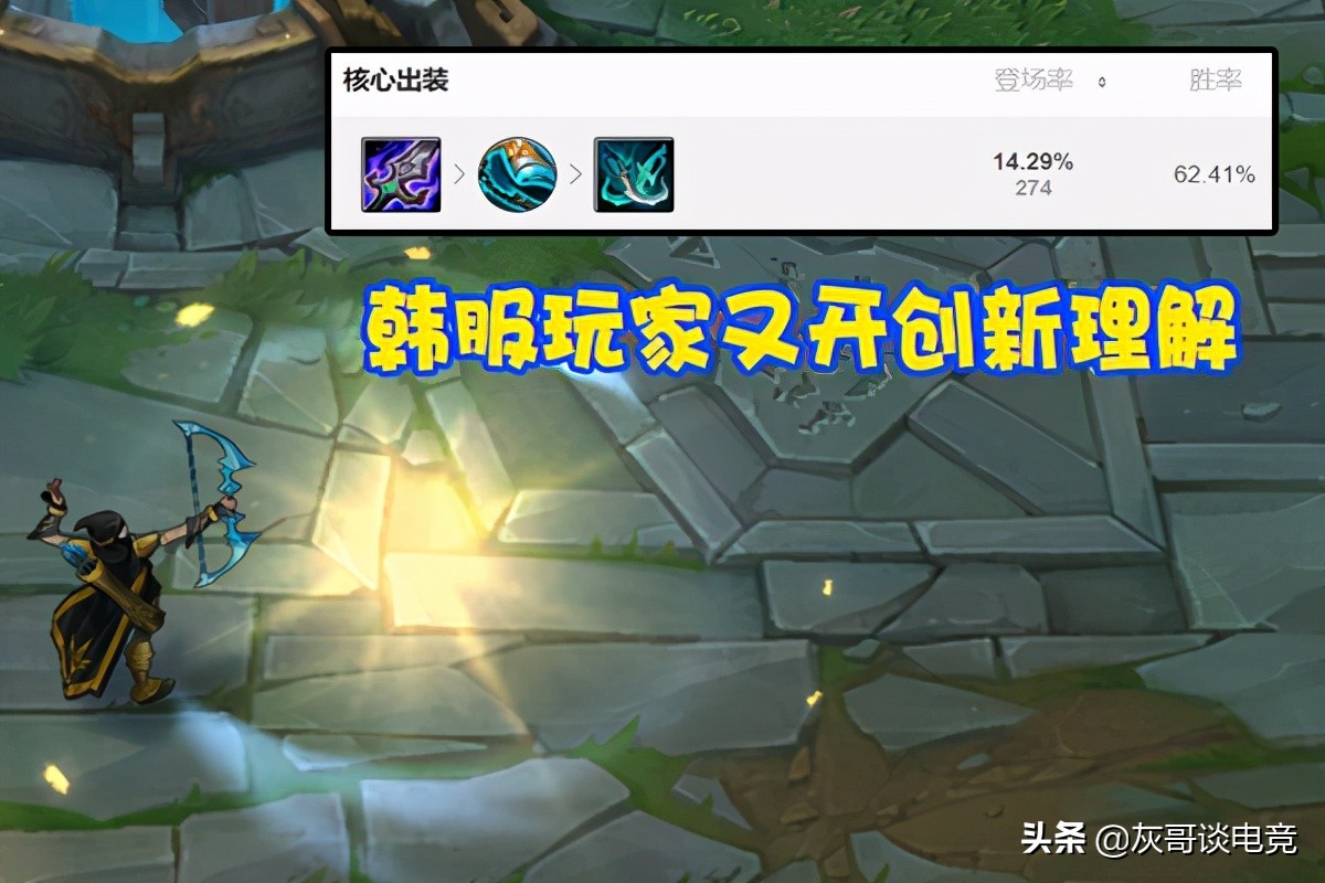 而就在近期11.7版本上线之后,韩服突然出现了一种全新的艾希玩法,第一件装备不出神话选择破败,接着补出挺进破坏者和绿叉,可以看到目前这套出装的登场率已经超过了海妖三件套与盾弓三件套,成为了艾希最主流的玩法,并且胜率还高达62.4%。