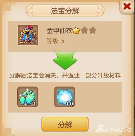法宝分解并不是1:1分解,简单的说可能连50%都不到!有哪些玩家会去分解法宝?这也太亏了吧!