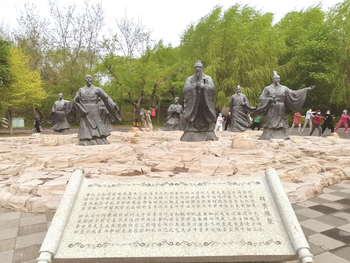 而“一阁八亭”主要展现“忠、孝、仁、义、礼、智、信、廉”八种传统道德精华;“群贤雅聚”引领游人追思古哲先贤经典学说;“古韵集萃”集中展示中国古典文化艺术之美。