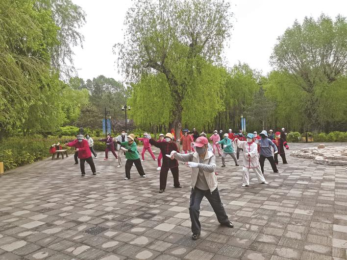 “静思廊”附近市民在打太极拳 本组图片 城市晚报全媒体记者 陆续 摄