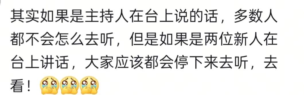 近日,有一位湖南用户发视频称,自己参加一对新人的婚礼时发现,婚礼中没有司仪主持人,而是由新人自己主持,视频发出后引发不少网友热议,有网友表示“很有意义”“很新奇”,还有网友向该用户寻求婚礼主持词,称自己结婚时也想这么做。