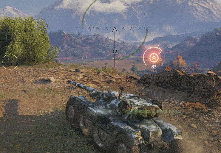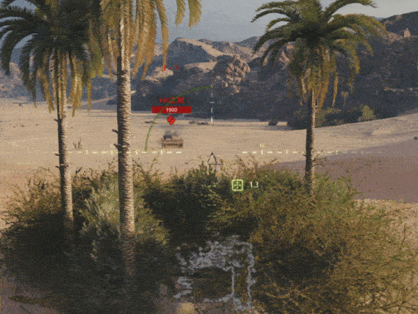 实例1:假设坦克A面板视野为445m,在无障碍物,无草丛的平原上,有另一辆坦克B,隐蔽值为10,那么坦克A点亮坦克B的计算距离为445-(10×0.01)×(445-50)=405m,而405m并没有超出445m的最大观察范围,所以坦克A点亮坦克B的有效距离为405m。