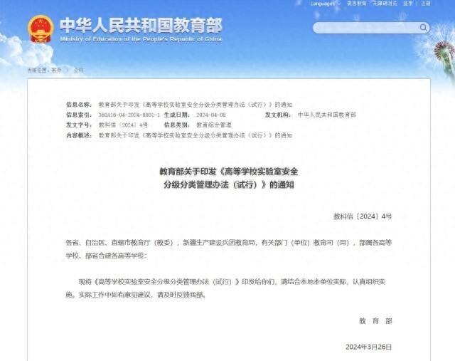教育部:高校实验室实行安全分级分类管理