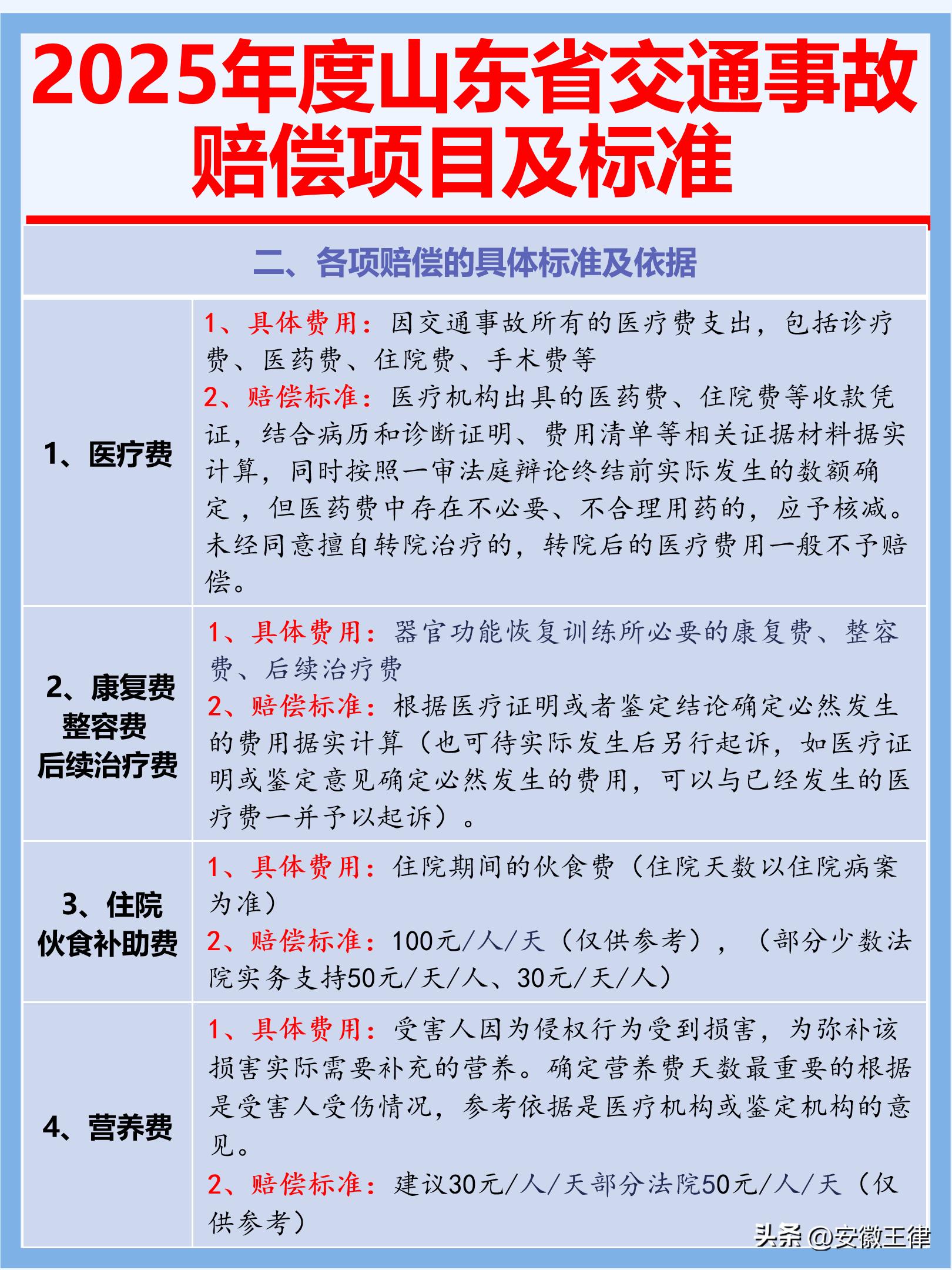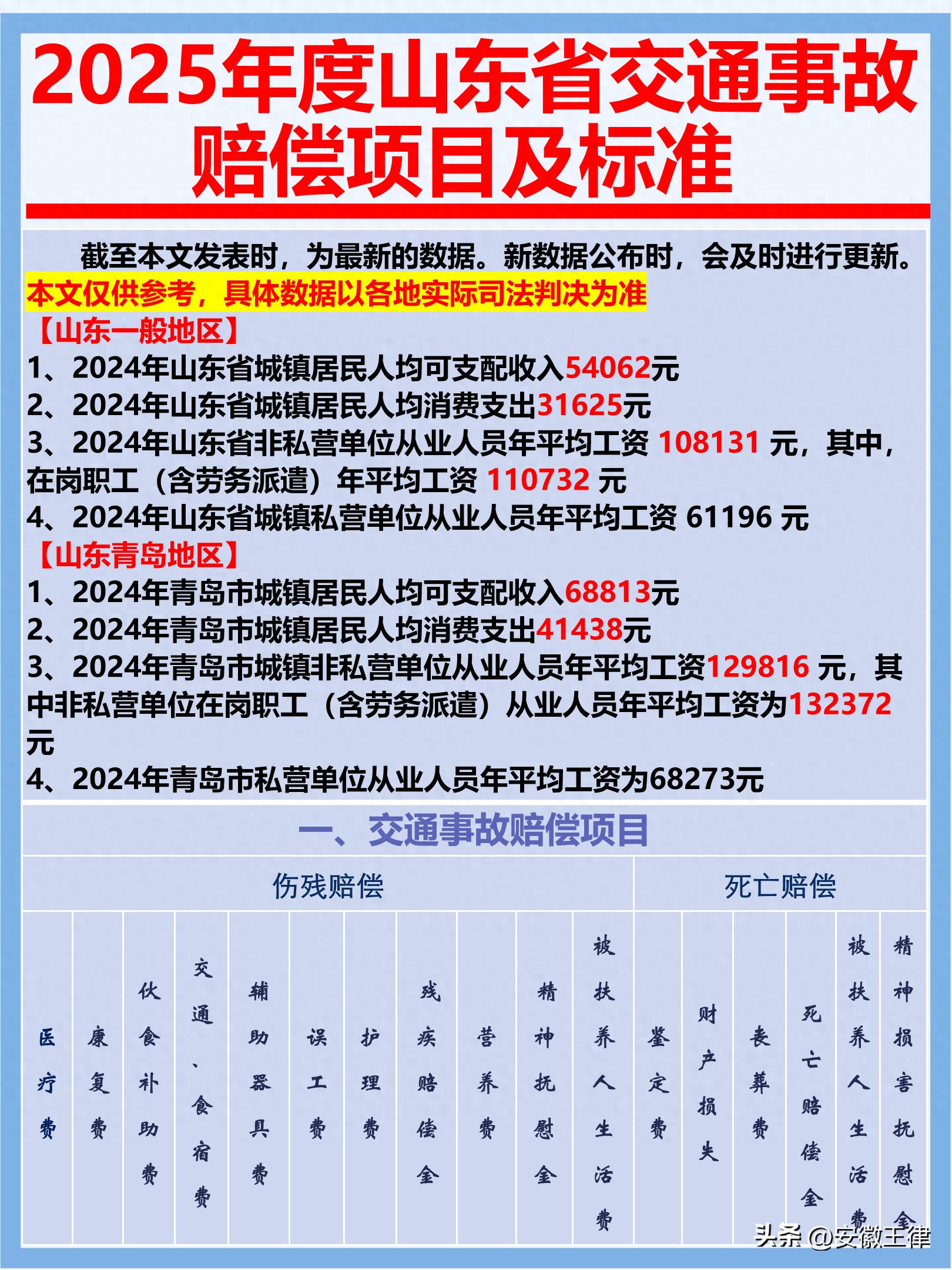 2025年山东省交通事故人身损害赔偿标准(2025.8.26更新)