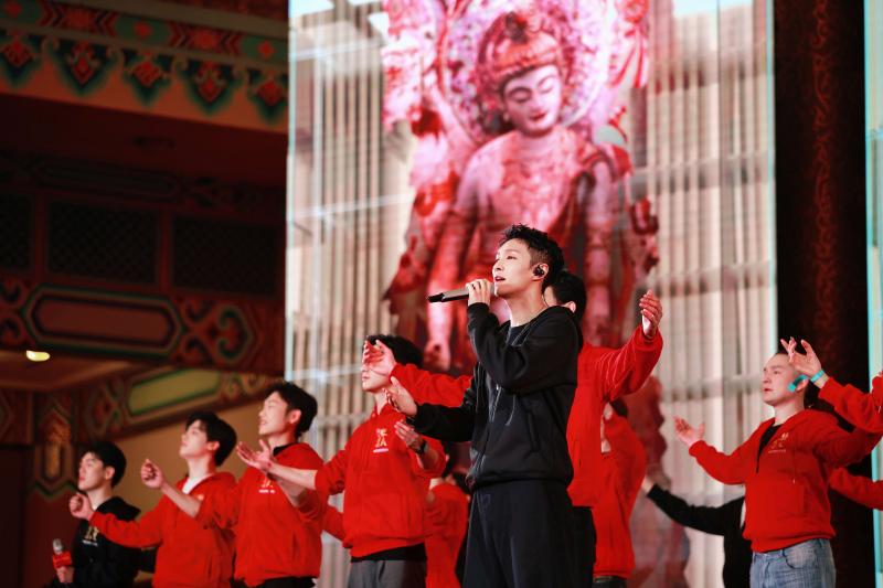 春日采风的震撼犹在耳畔,中秋小长假重装集结开始剧本围读仿佛就在昨天,科技之力助推艺术之美,洞窟中的瑰丽色彩,月牙鸣沙之间的气息和温度也化为有形的音符,融汇在现场张艺兴和众人的演唱中。这首深情大气的歌曲《受到召唤·敦煌》仅仅是剧中20多首不同曲风音乐中的一首,深邃的中国式表达以及自由开合的不凡气象从中可见一斑。
