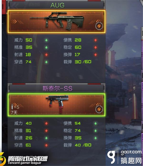 AUG对战斯泰尔-SS,斯泰尔-SS又是一款紫装品质的武器,可是AUG并没有在数据上落后反而大大的反超了,威力还是不容小觑的。