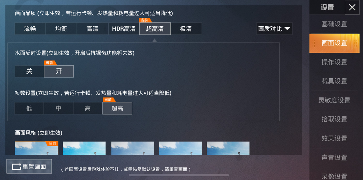 左右两侧有画质对比,超高清还是很靓丽的,对水面反射可以打开或者关闭。
