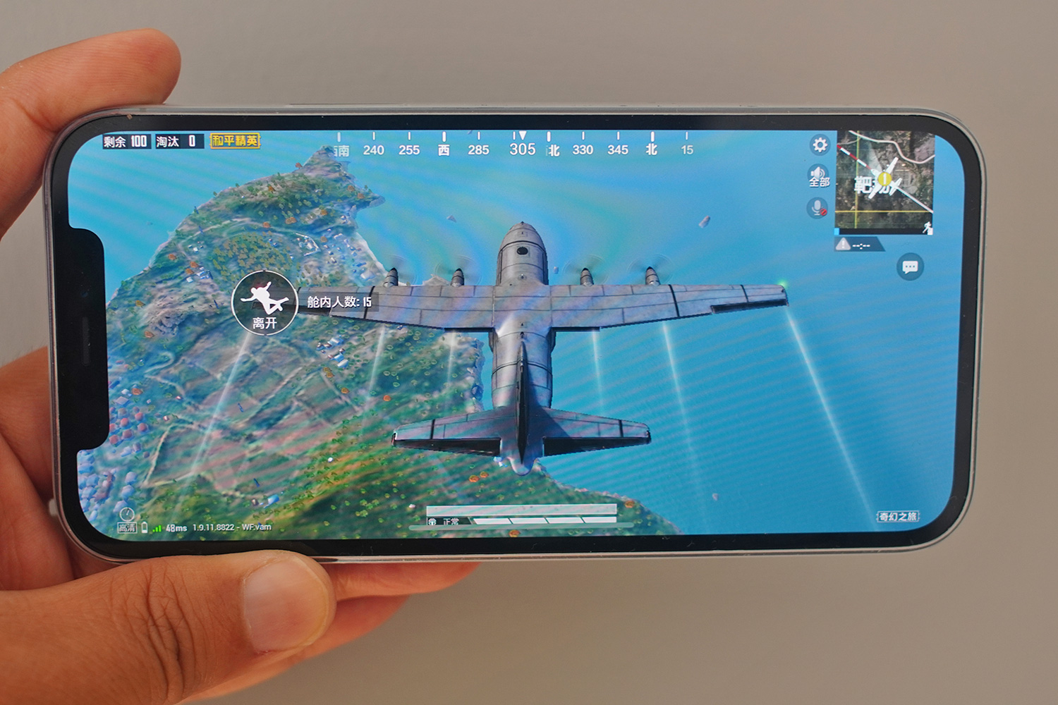 先说说总体体验,iPhone 12屏幕只有60Hz刷新率,手机小巧,6.1英寸OLED屏幕,体验起来除了设置那个按钮不太好按,其它还可以。估计iPhone 12 mini想玩吃鸡有点难,远处很可能看不清。