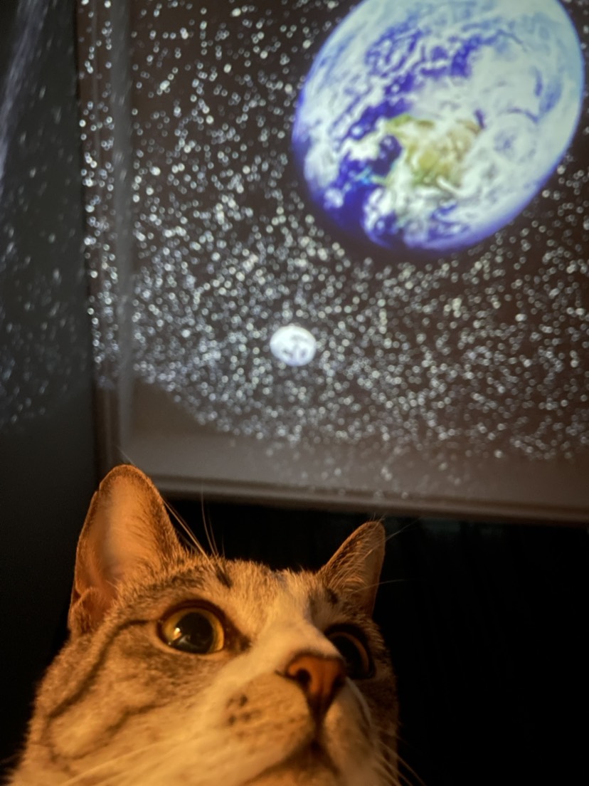 你们是不是也看到过橙友圈中的这张仰望星空的喵星人照片?这是橙友@雁子在#萌宠#话题下与大家分享家中喵星人的日常照。当天在调试新买的投影,无意中发现家中的猫咪对投影出来的星空格外有兴趣,顺势咔嚓了一张。