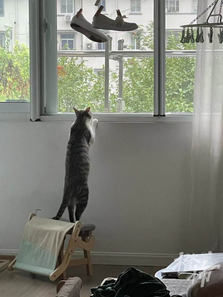 为了看窗外的动静,黑酱有过各种千奇百怪的姿势,就连窗户边缘那一点点突出的受力点都能成为它的踏脚板。