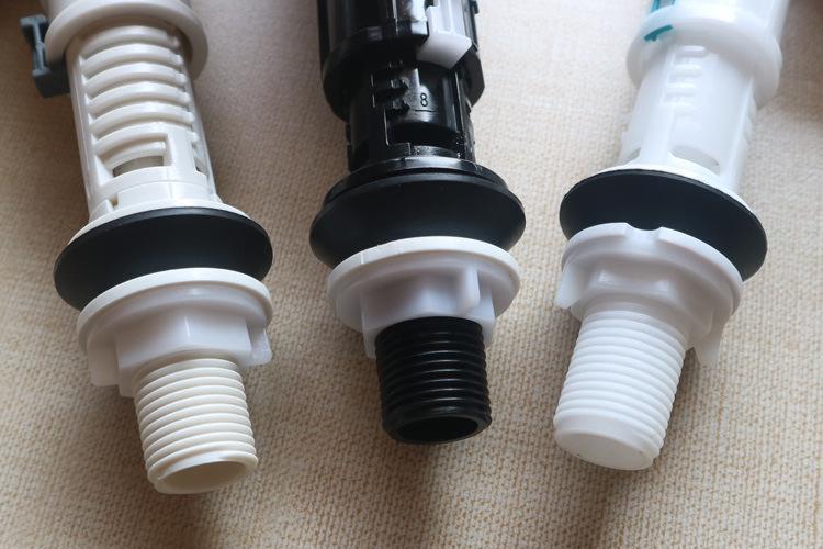 冲水马桶之所以可以控制进水量,全靠浮力开关上的塑料螺杆调节,如果在出水开关没有卡住的情况下,马桶水仓还一直上水,多半是塑料螺杆设置过高所致。如下图: