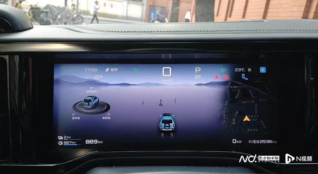 豹5搭载的DMO超级混动越野平台本身主打以电为主,市区工况“越堵越省”。因为,电量一旦过低,发动机就会采取串联发电补能。而在中高速行驶部分工况下,发动机又会启动进入并联模式,和电机共同参与驱动,也可能由发动机直接驱动,电机发电回收多余能量。在这几天车辆电池电量不足的情况下,豹5的实测综合油耗在8L/百公里左右,略高于官方公布的数值。