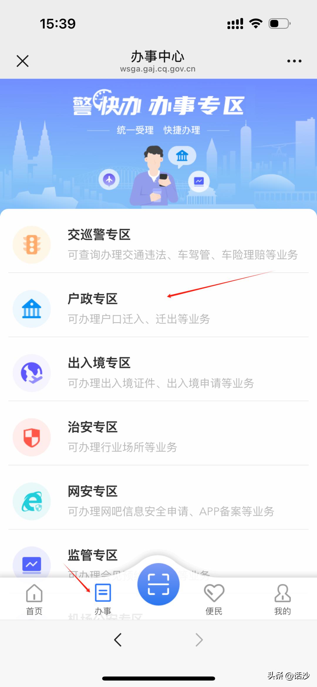 进入警快办-点击"办事"-"户政专区"