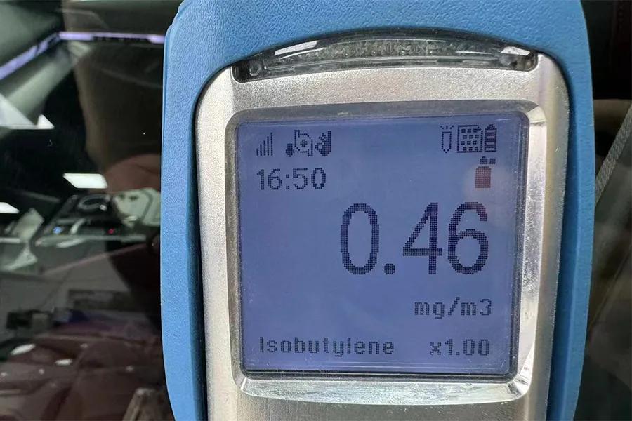 经过在23±1℃恒温环境中16小时的封闭,这辆车的车内空气TVOC释放量测量数值为0.46毫克每立方米。