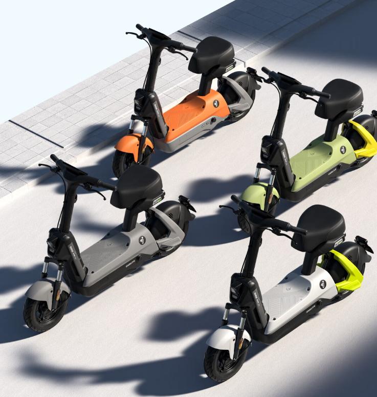 该车可选 4 款配色,搭载 48V 12Ah 铅酸电池,号称续航达 50km;配有五级可调式中置减震,400W 无刷电机、前后鼓刹。