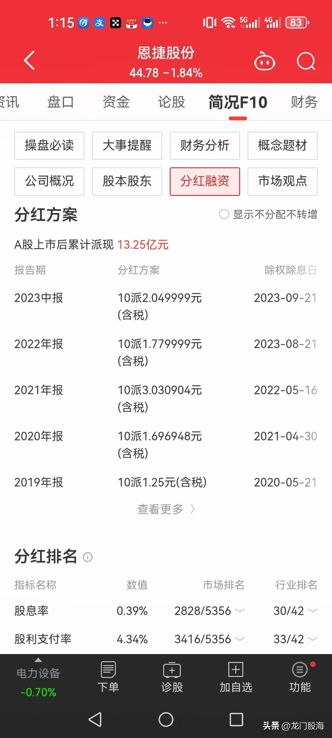 财务方面,上市以来业绩比较优良,去年业绩有所下滑,2023年归母净利润为21.54亿元,同比下降33.24%。分红方面,恩捷股份上市以来累计分红派现13.25亿元。股息率0.39%,股利支付率4.34%,目前公司市盈率14.91,市净率1.62,每股收益2.2元,每股净资产27.55元。质押总股本比16.33%。