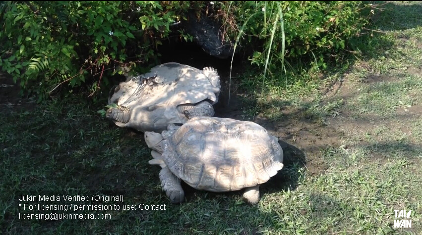 经过半分钟的努力,朋友终于脱困了,两只龟一起慢慢的爬走了。