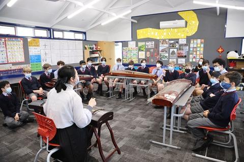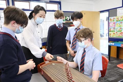 人民网悉尼8月25日电在2022年新西兰中文周到来前夕,座落在新西兰首都惠灵顿大区的哈特国际男子学校,迎来了一年一度的校园中文周活动。近日,惠灵顿中国文化中心古筝教师左若琰应邀前往哈特国际男子学校,为该校8至13年级的70多名男生依次推出历时5个课时、别出心裁的“中国天籁——带你认识古筝”教学工坊活动。