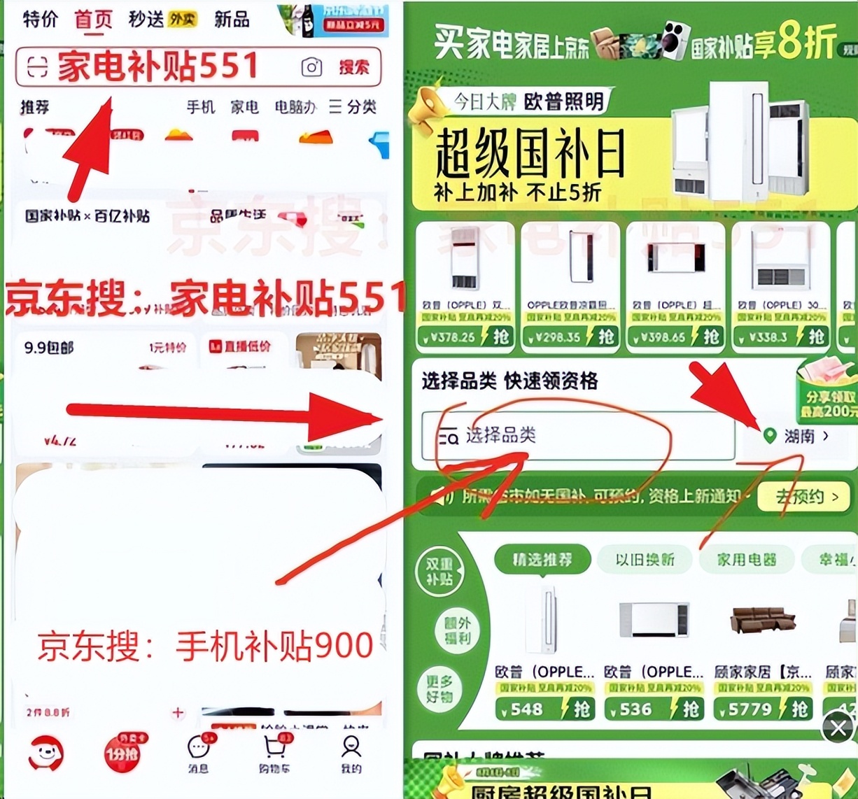 家电家具国补资格的领取方法入口是:京东APP搜「家电补贴551」国补最高立减2000元,手机数码国补资格的领取方法入口是:京东APP搜「数码补贴114」或者「手机补贴900」最高补贴500元。