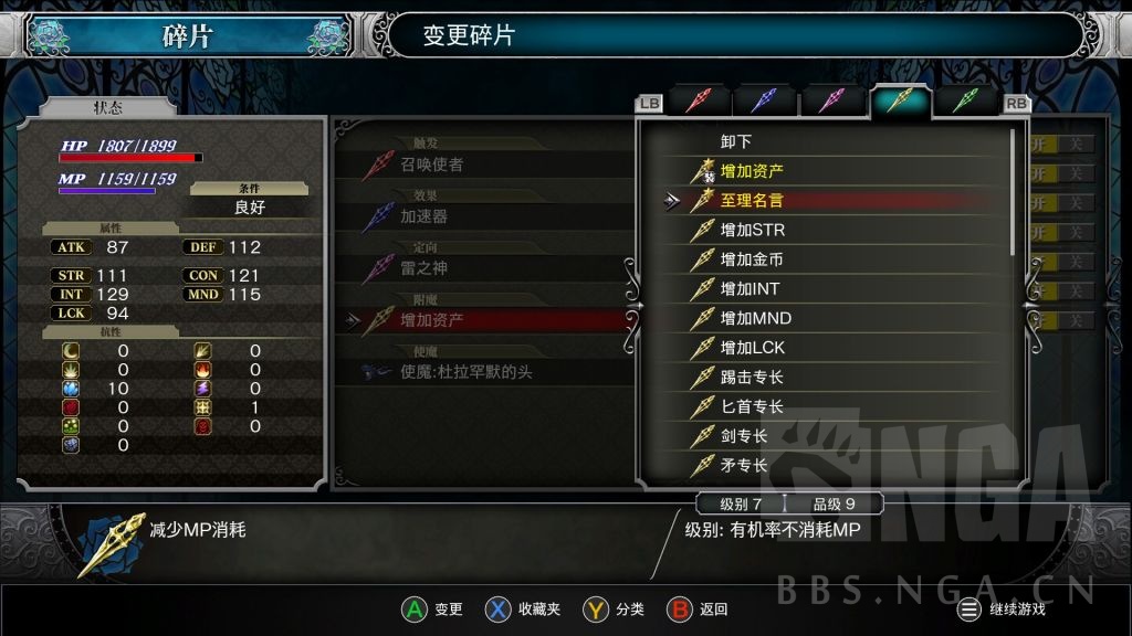 -每一个碎片有:级别(最高9,在安全屋使用素材升级)和品级(最高9,叠加碎片升级)