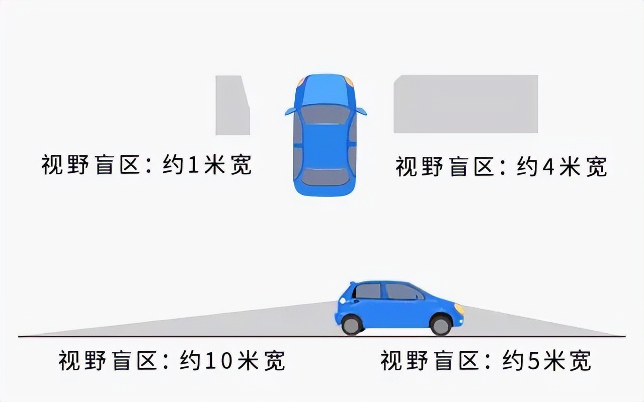 由于车辆前后方有发动机和后备箱遮挡,驾驶人很难发现车辆前后方1米以下的儿童或障碍物。此外,车身、座椅高度、车头长度、驾驶人身材等因素都可能导致出现盲区。