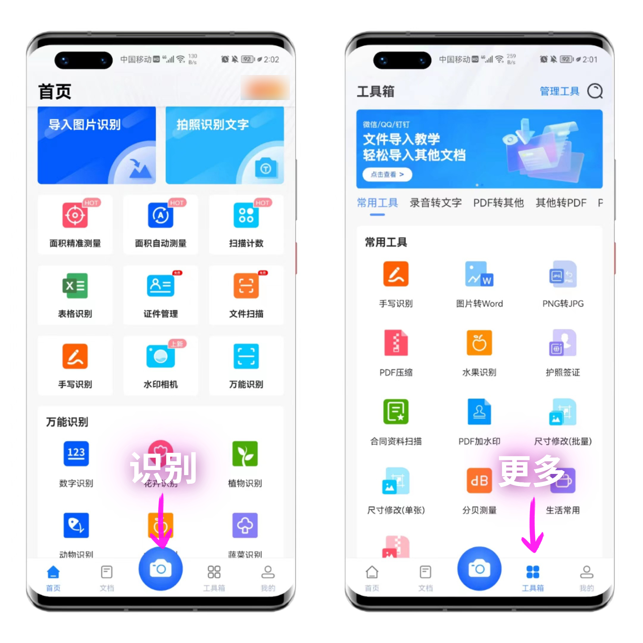 7.上面这些功能都是华为手机自带的,我们还可以用【掌上识别王】,除了能扫描文稿、试卷、身份证,还能扫描计数、测量面积、识别万物。