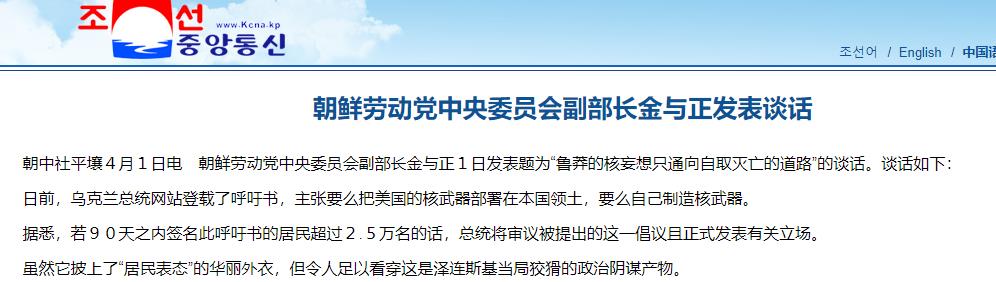 不过木叔发现,4月1日朝鲜忽然以金与正谈话的方式,高规格批评泽连斯基,这还是非常少见的。