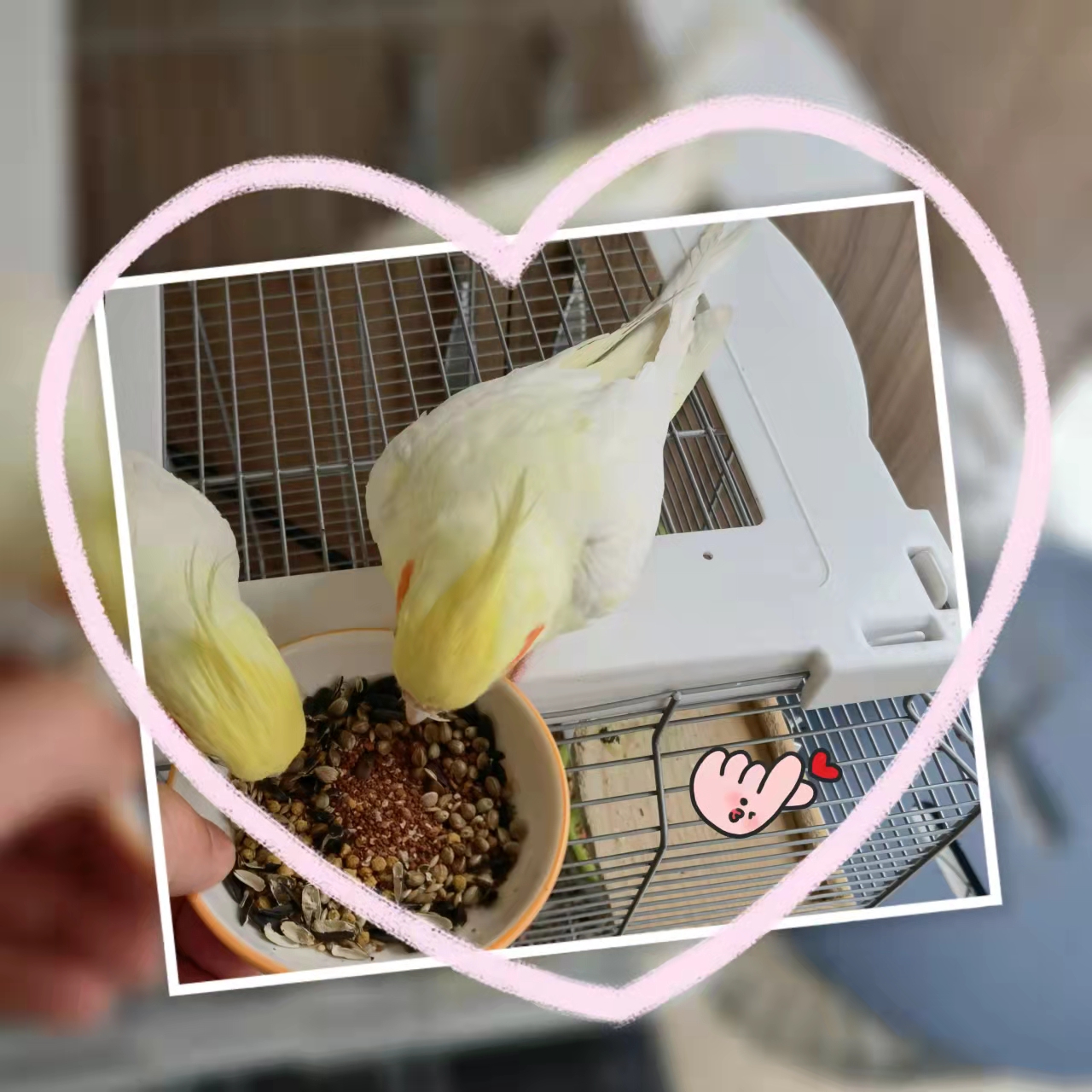 第五步:手持食盒或者鹦鹉爱吃的食物,站在笼外1-2米处,哼唱它熟悉的儿歌或者名字使鹦鹉飞到手上来。到这一步剩下的就是每天的陪伴和互动了,恭喜你已经有了一只亲人的小玄凤。