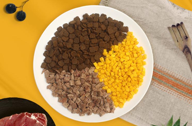 主要原料:牛肉、蛋黄、鸭肉、益生菌、果蔬、红薯粉、糙米