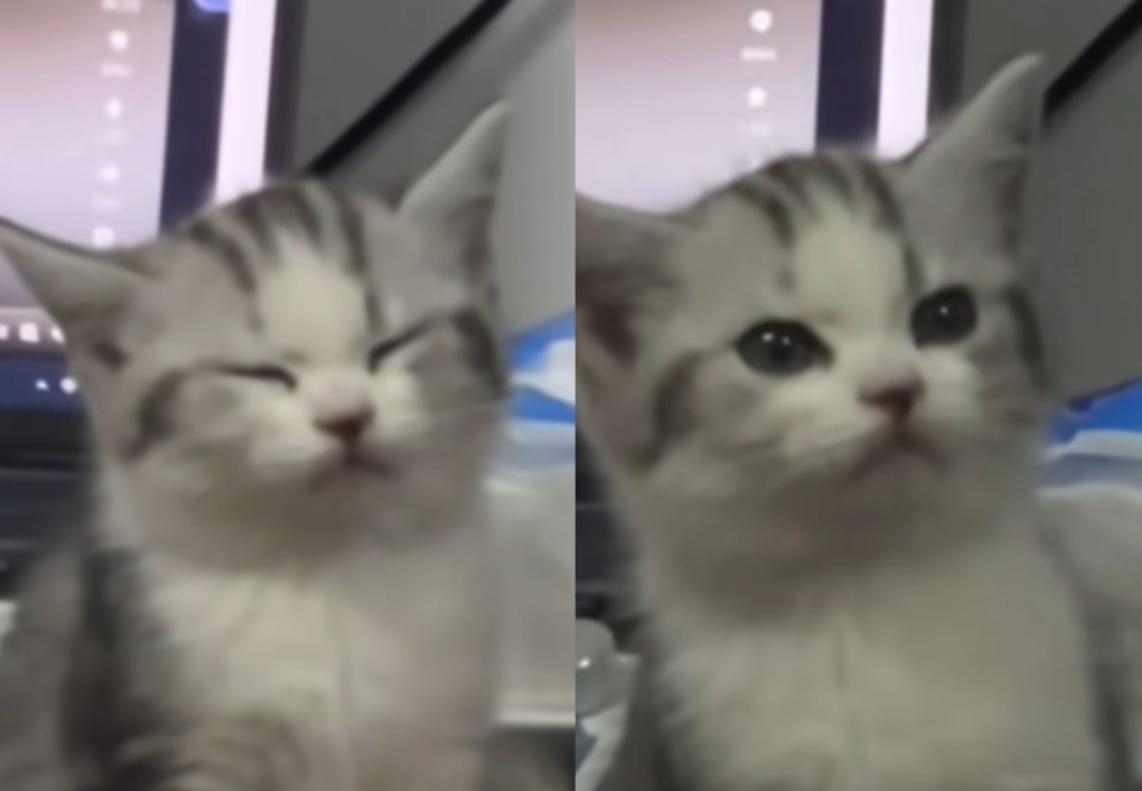 甚至,到后来,小猫困得已经睁不开眼睛了,但它还是会努力让自己保持端正的坐姿。