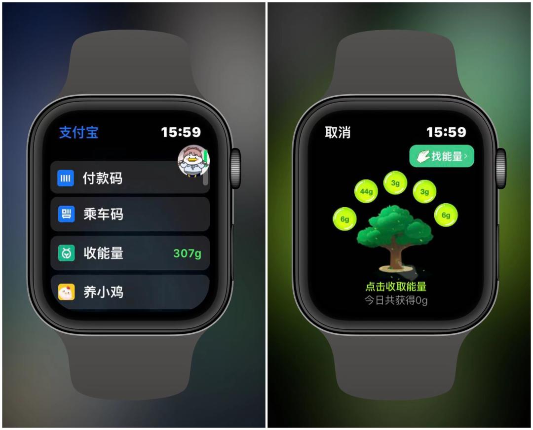 另外,如果你有Apple Watch,还可以直接进入支付宝收能量,也很方便。