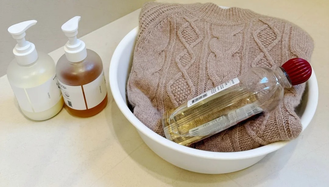 (清洗羊绒羊毛衫,千万别用洗衣服洗衣液,用羊毛衫羊绒衫专用洗衣液,也可以用洗发水护发素泡。)