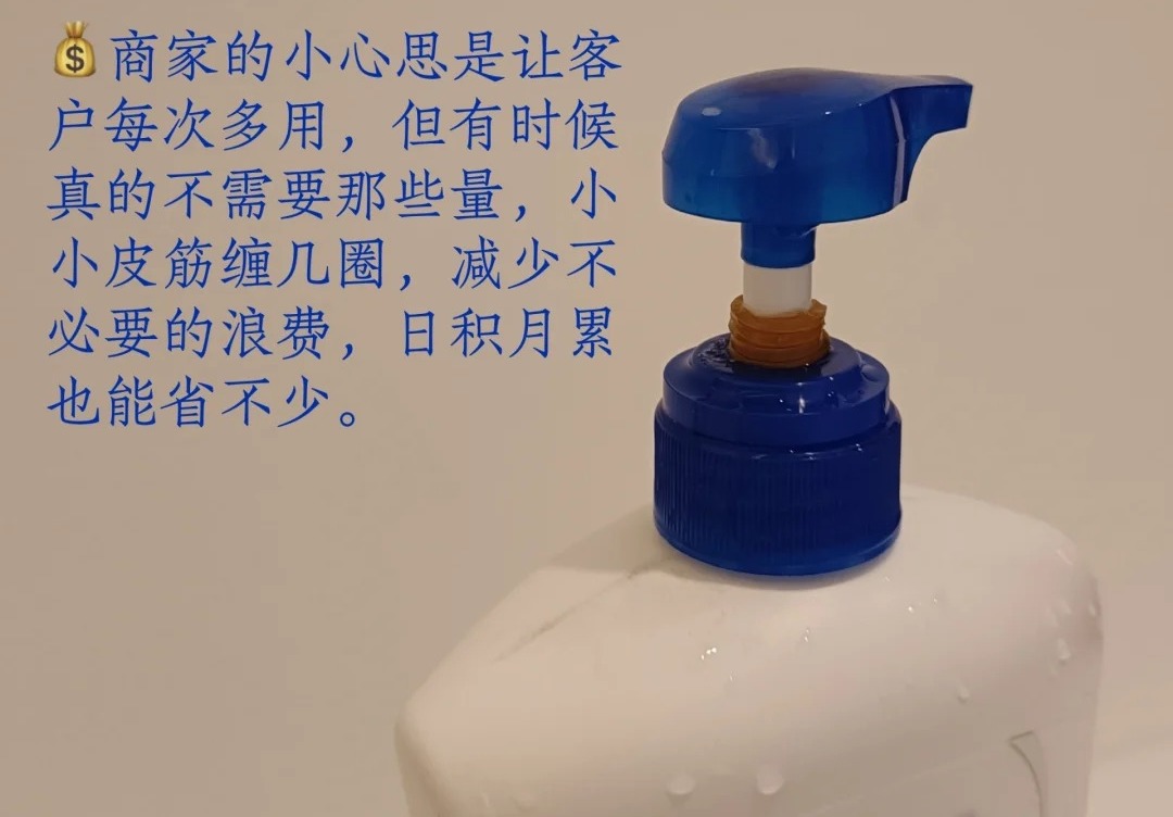 在沐浴乳瓶口用橡皮筋缠几圈,