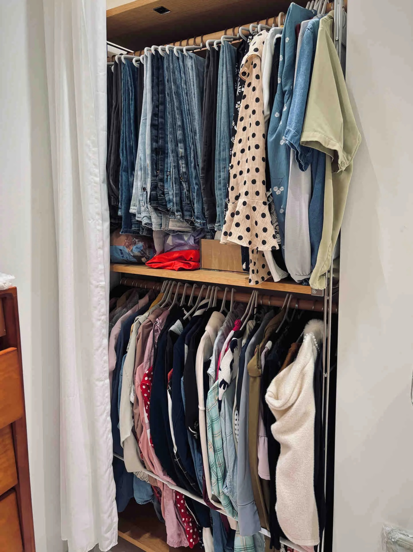 裤子挂衣柜上层,衣服挂衣柜下层,