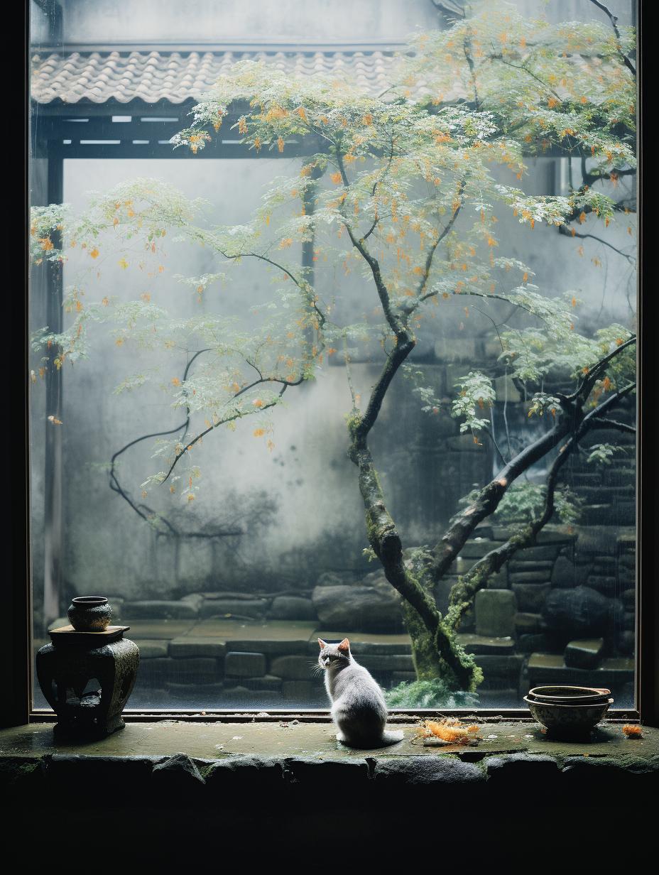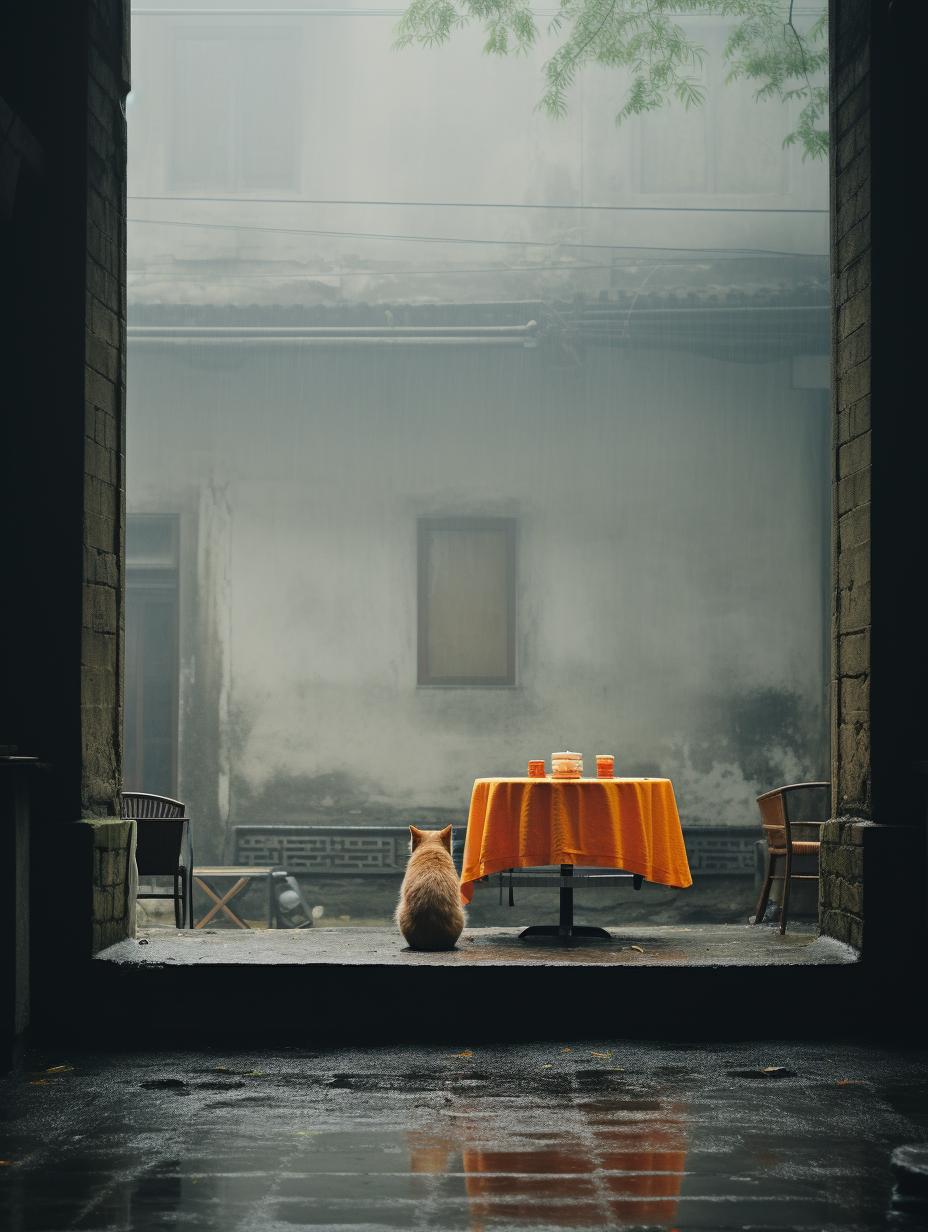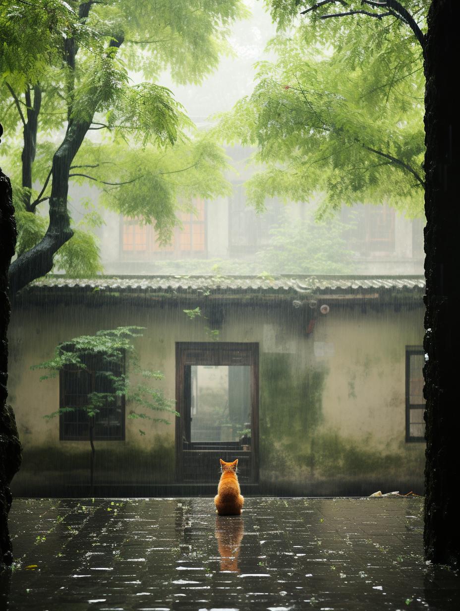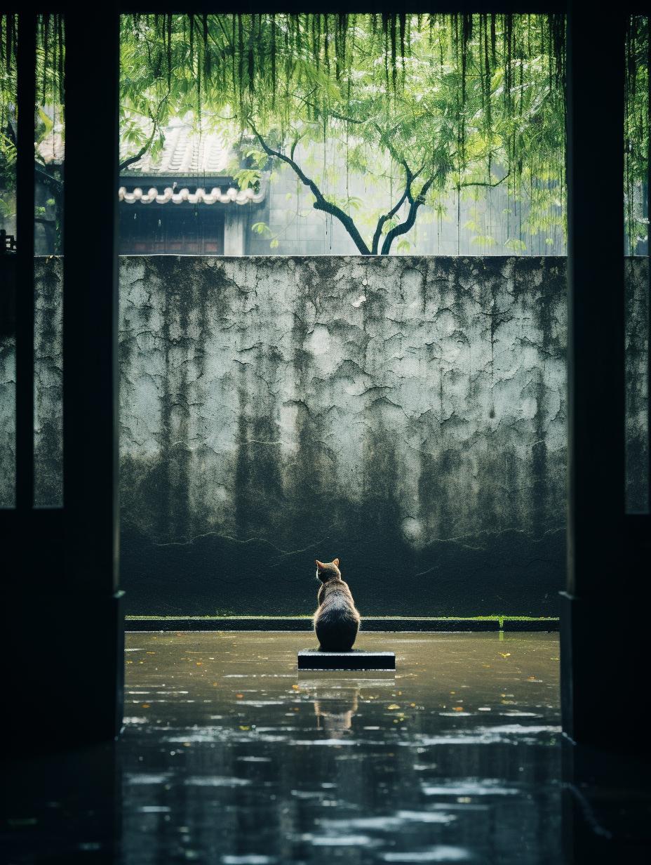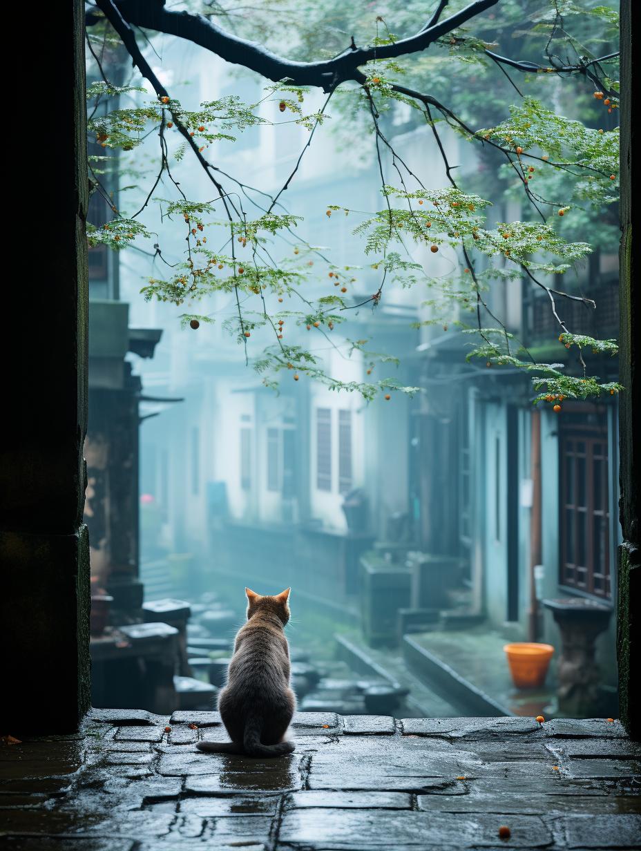 而在这个时刻,猫与环境之间构成了一种和谐的画面。细雨中,猫儿静静地注视着远方,仿佛在向往着一种温馨和归属。或许,它的等待是一种渴望被理解和被陪伴的心情。