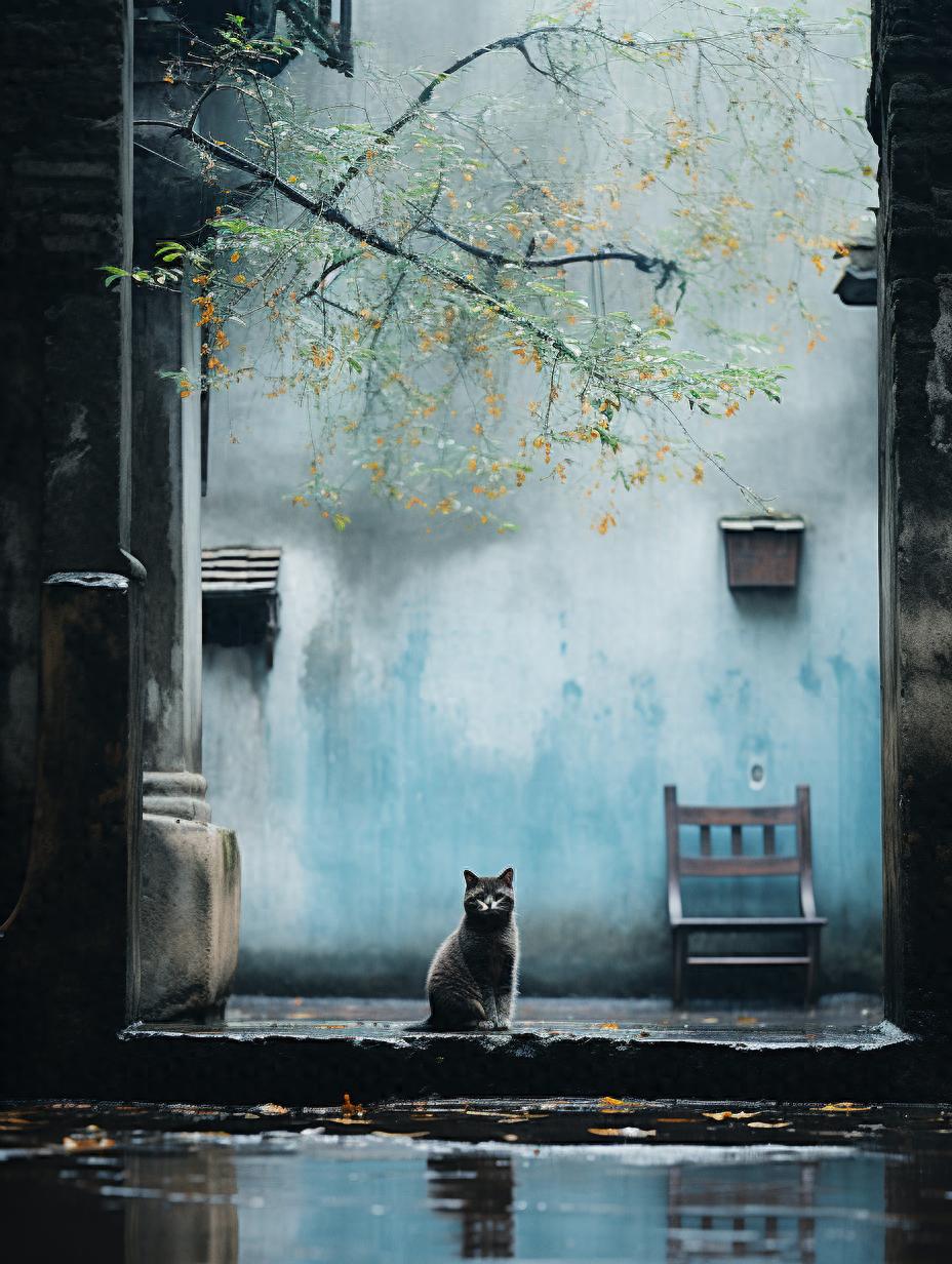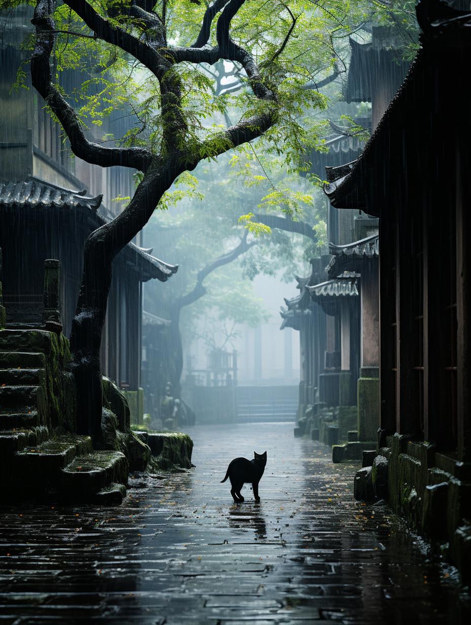 烟雨江南,猫在等你——绝美意境AI壁纸
