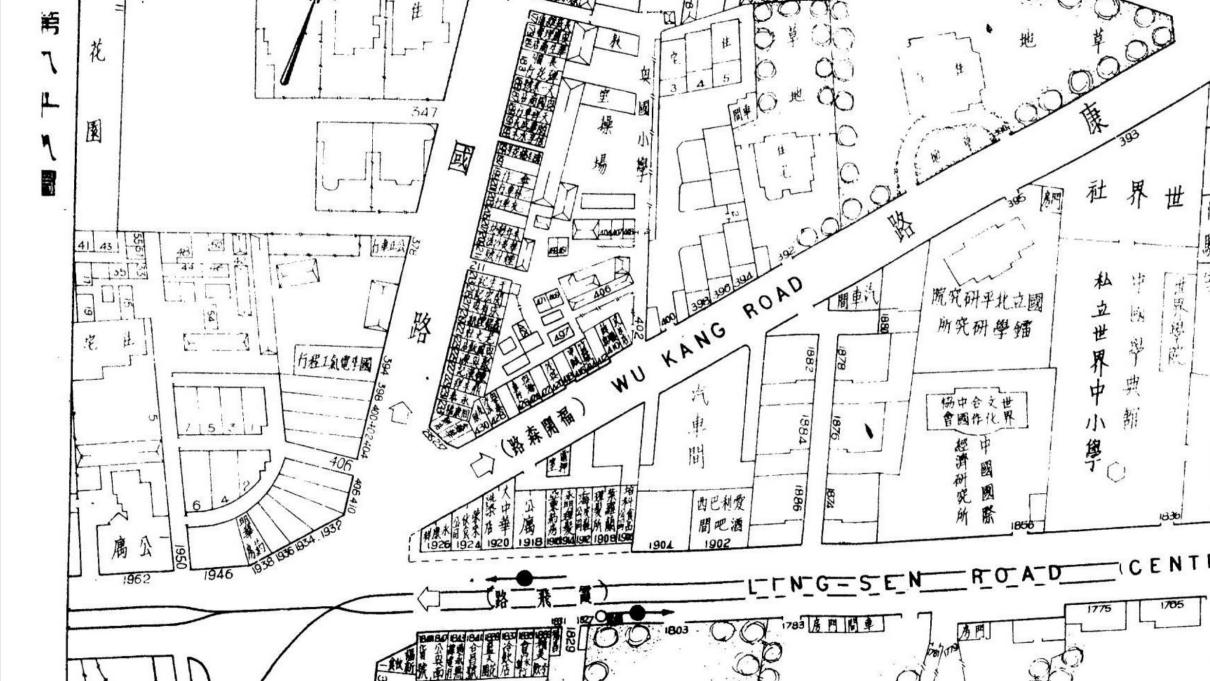 老地图中的武康大楼,可见“汽车间”“药房”等配套设施。©《上海市行号路图录》(1947年)
