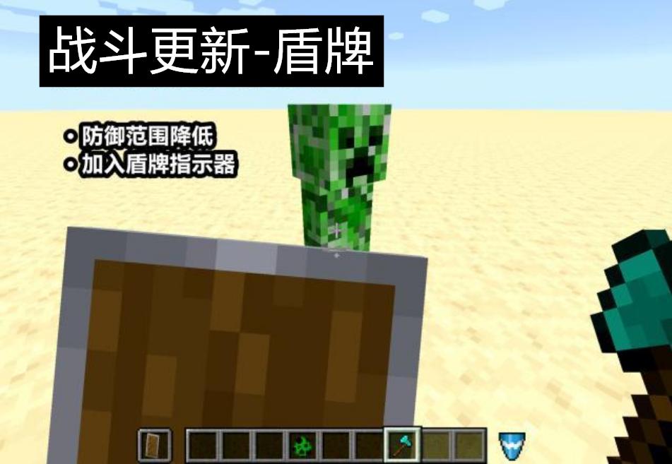 然而在最近一次的基岩 Beta 1.18.30.26 中对盾牌进行了调整,这一调整并未列明在任何的更新列表中。但对于基岩版玩家来说,这将视为近年来Minecraft影响深远的一次重大战斗机制更新!